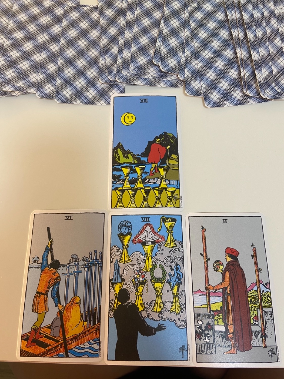 สวัสดีค่ะ เราไปจับไพ่มา ถามว่าภายในเดือนนี้เราจะได้คุยหรือติดต่อกับแฟนเก่าไหม ไพ่ออกมาแบบนี้ค่ะ รบกวนผู้รู้ช่วยแปลไพ่ให้หน่อยนะคะ ขอบคุณล่วงหน้าค่ะ ^^