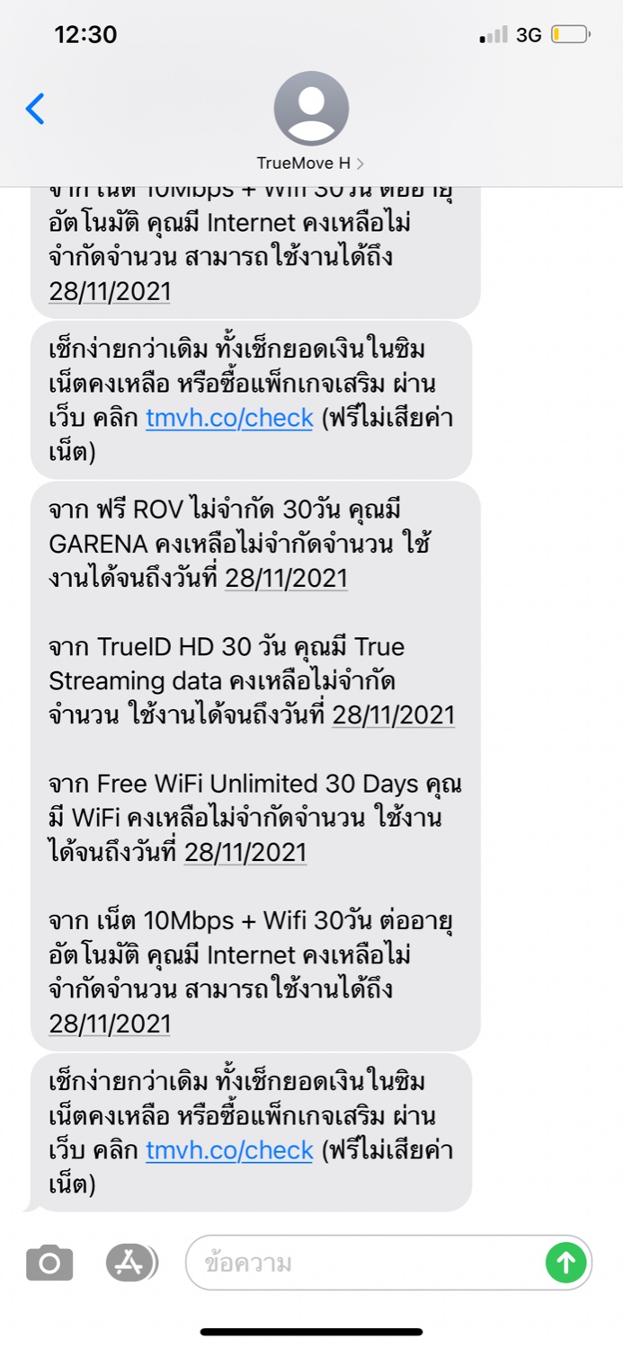 เมื่อกี้ call centre ของทรูโทรมาเสนอเปลี่ยนแพคเกจเน็ตที่ดีกว่าให้ ผมก็ปฏิเสธไป แต่เสียงในสายก็พูดต่อว่าต้องการเสียงยืนยืนการเปลี่ยนแพคเกจจากนั้นก็บอกขอบคุณแล้ววางสาย ผ่านไป10 นาที ก็มีข้อความแบบนี้ส่ง