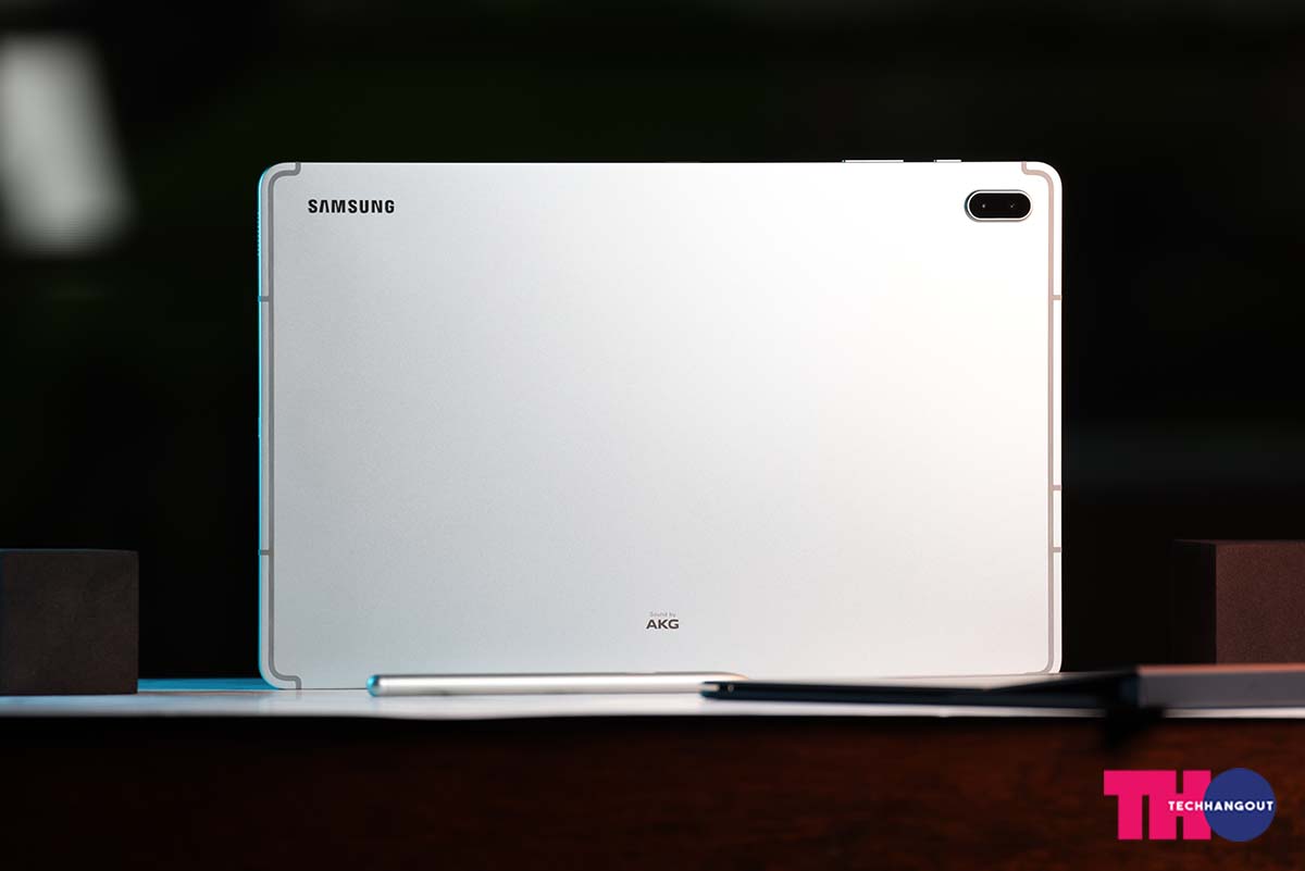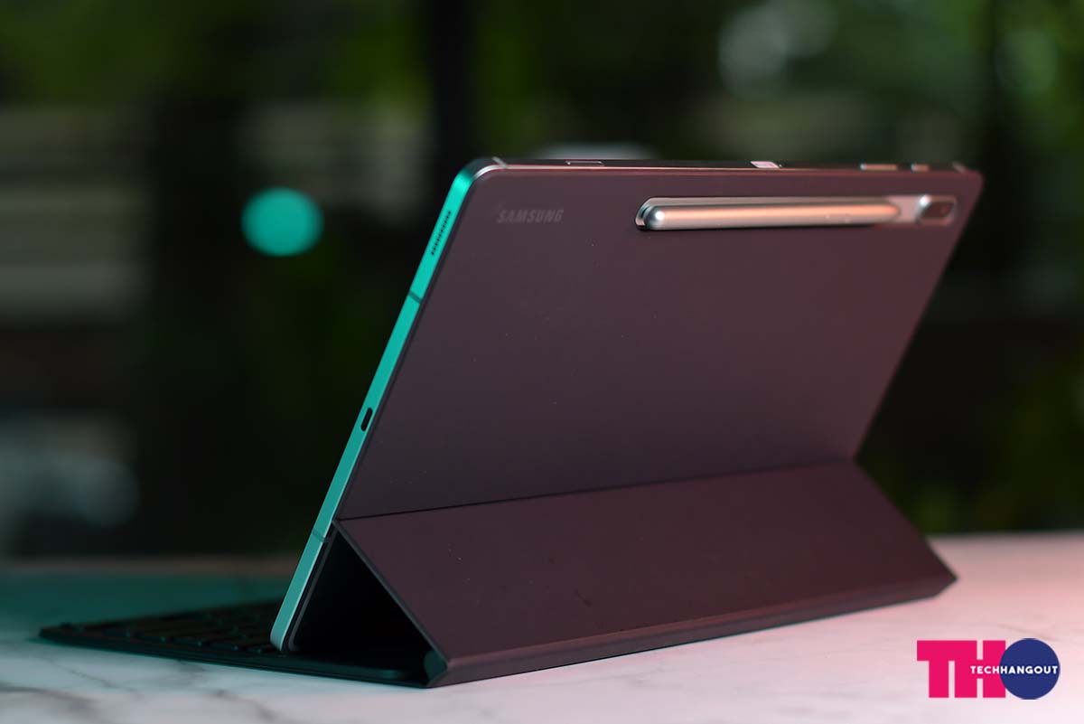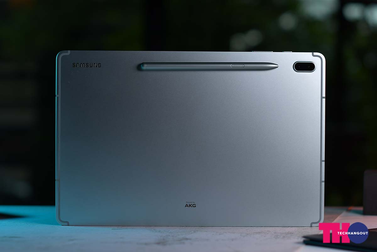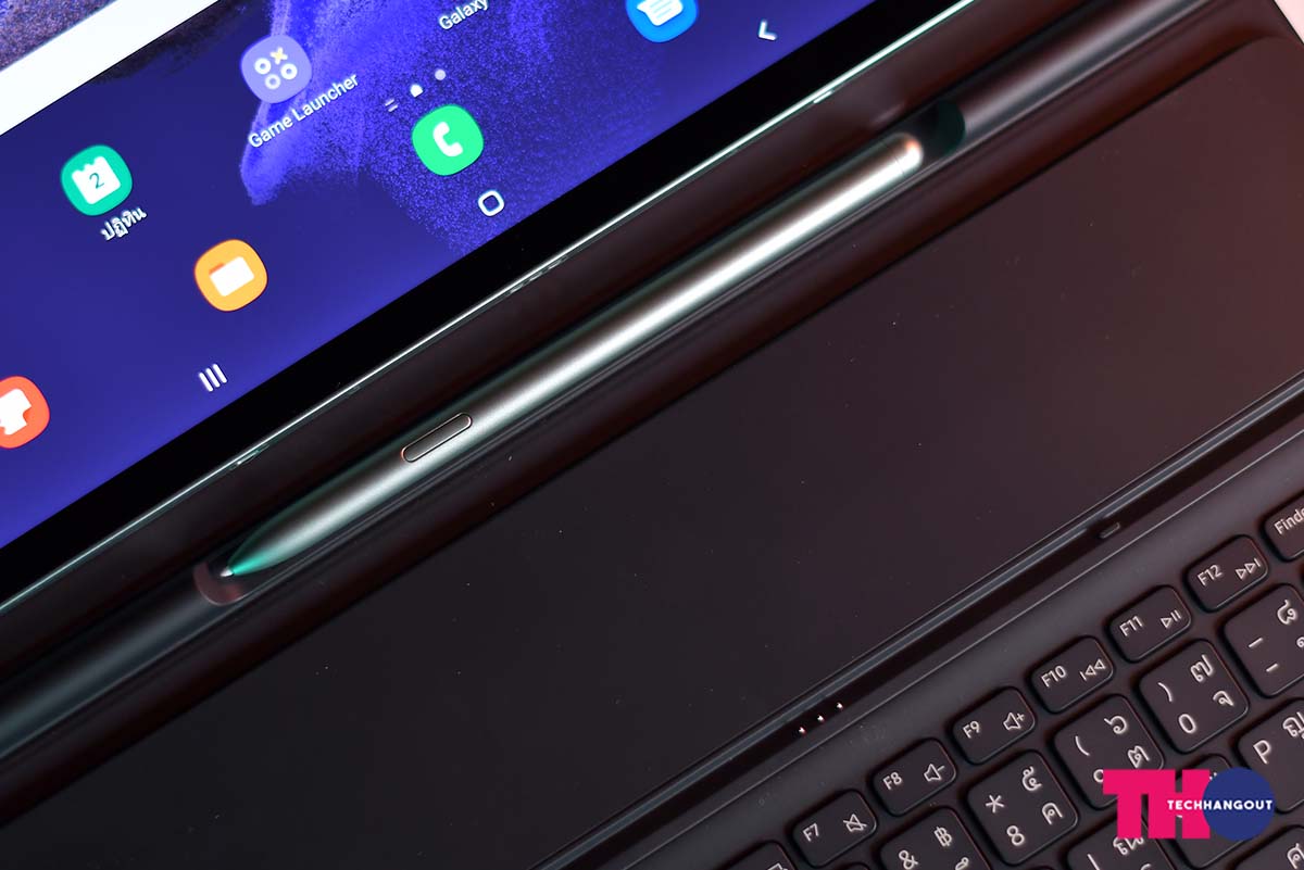 เราสามารถเอาปากกา S Pen นี้มาแปะที่ด้านหลังในระนาบเดียวกับกล้องหลังได้แบบเดียวกับซีรี่ส์ Galaxy Tab S7 แต่ที่พิเศษกว่านั้นคือสามารถเอา S Pen ไปแปะไว้ที่ขอบด้านบนได้ด้วย และที่สำคัญคือ ช่องเก็บปากกาด้านหลังจะเปิดเอาไว้ก็มีโอกาสที่จะหลุดได้เหมือนเดิม