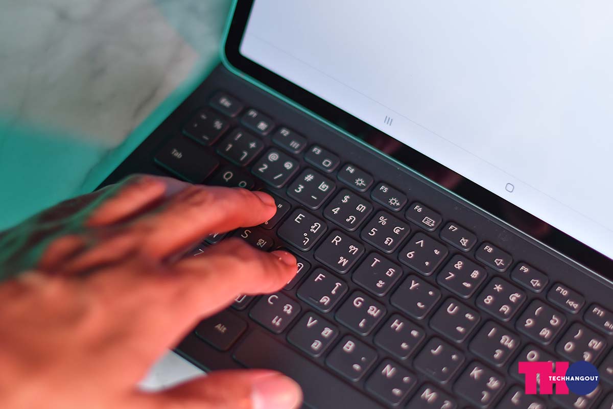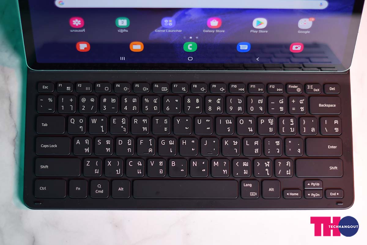 Samsung ยังได้มีการส่ง KeyBoard Cover มาให้เราได้ใช้ ตัวเคสก็ยึดติดกับเครื่องได้อย่างง่ายดายเพราะใช้แม่เหล็ก ไม่ต้องมาคอยง้างเคสให้เสียวเป็นรอยเวลาใส่หรือดึงออก มีมุมองศาที่ 60 องศา กำลังดีในการใช้พิมพ์งานหรือตั้งเพื่อใช้ Video Call หรือดูหนังได้อย่างพอดี โดยตัวเคสนี้จะมาราคาอยู่ที่ 4,990 บาท (ต้องซื้อแยกนะ) ซึ่งตัว KeyBoard Cover นี้คือ Book Cover ของซีรี่ส์ Galaxy Tab S7 แล้วเพิ่ม Keyboard เข้าไป ทำให้เป็นส่วนผสมที่ดูดีสุดๆ