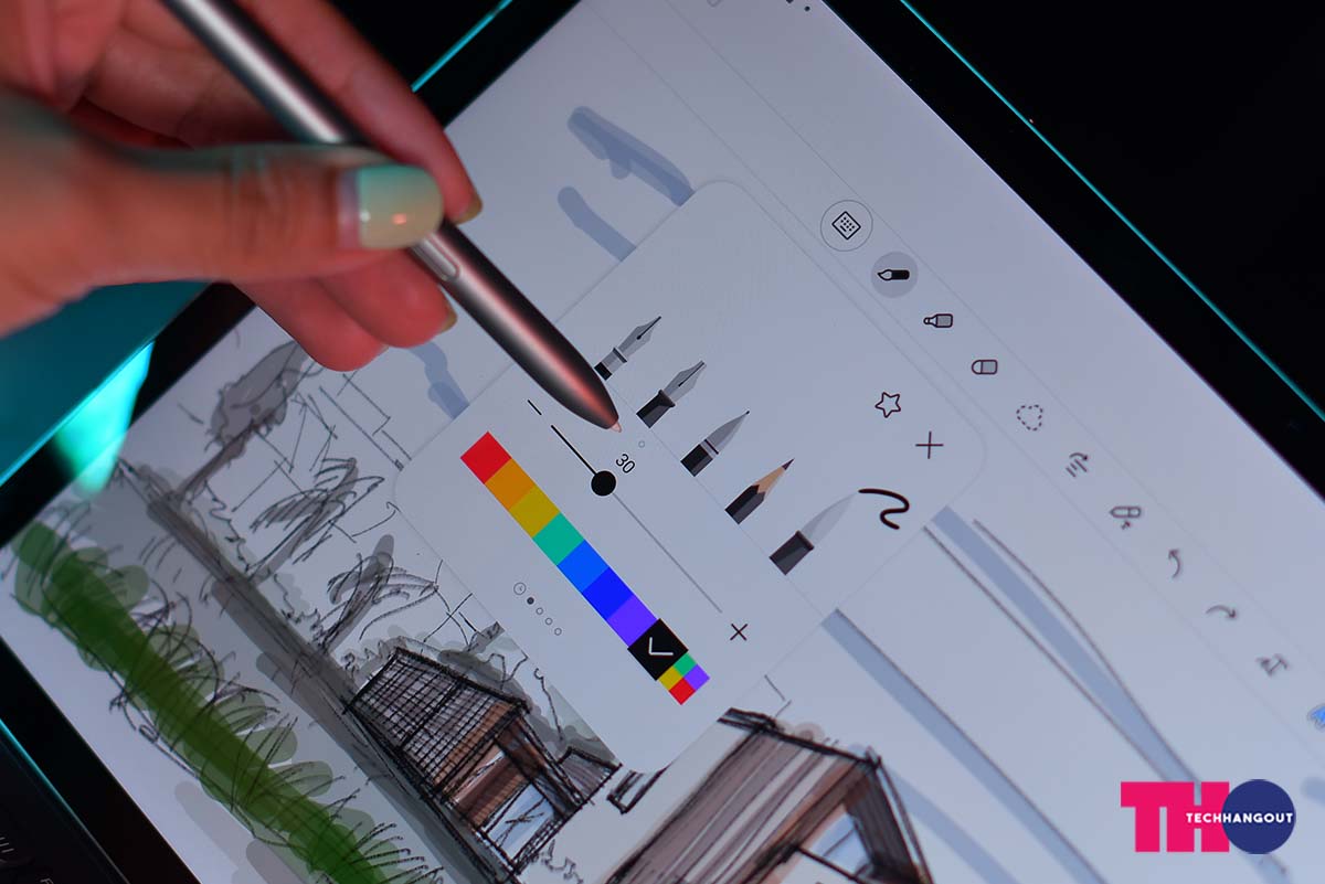 ปากกา S Pen นั้นสร้างสรรค์ดีไซน์จับถือง่าย รูปทรงแบบอ้วนกลมกำลังดี ความยาวพอประมาณ และแอป Samsung Note เวอร์ชั่นล่าสุดนั้นมีความสามารถที่หลากหลายมาก ไม่ว่าจะเป็นการจดข้อความแบบลายมือ หรือจะให้เครื่องเปลี่ยนการจดข้อความแบบลายมือ พร้อมใช้ฟีเจอร์ Handwriting to Text เปลี่ยนลายมือให้กลายเป็นตัวอักษรก็ยังได้ แถมยังรองรับทั้งภาษาไทยและภาษาอังกฤษ ไม่เพียงเท่านั้นยังรองรับการวาดเขียนรูปภาพได้ดีเลย สามารถใช้ได้สะดวกๆเลย แถมแรงดูดใช้ได้ดีเลย