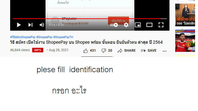 Shopee pay กรอกข้อมูลยืนยันตัวตนถูกแล้วแต่ขึ้นว่าไม่ถูกต้อง