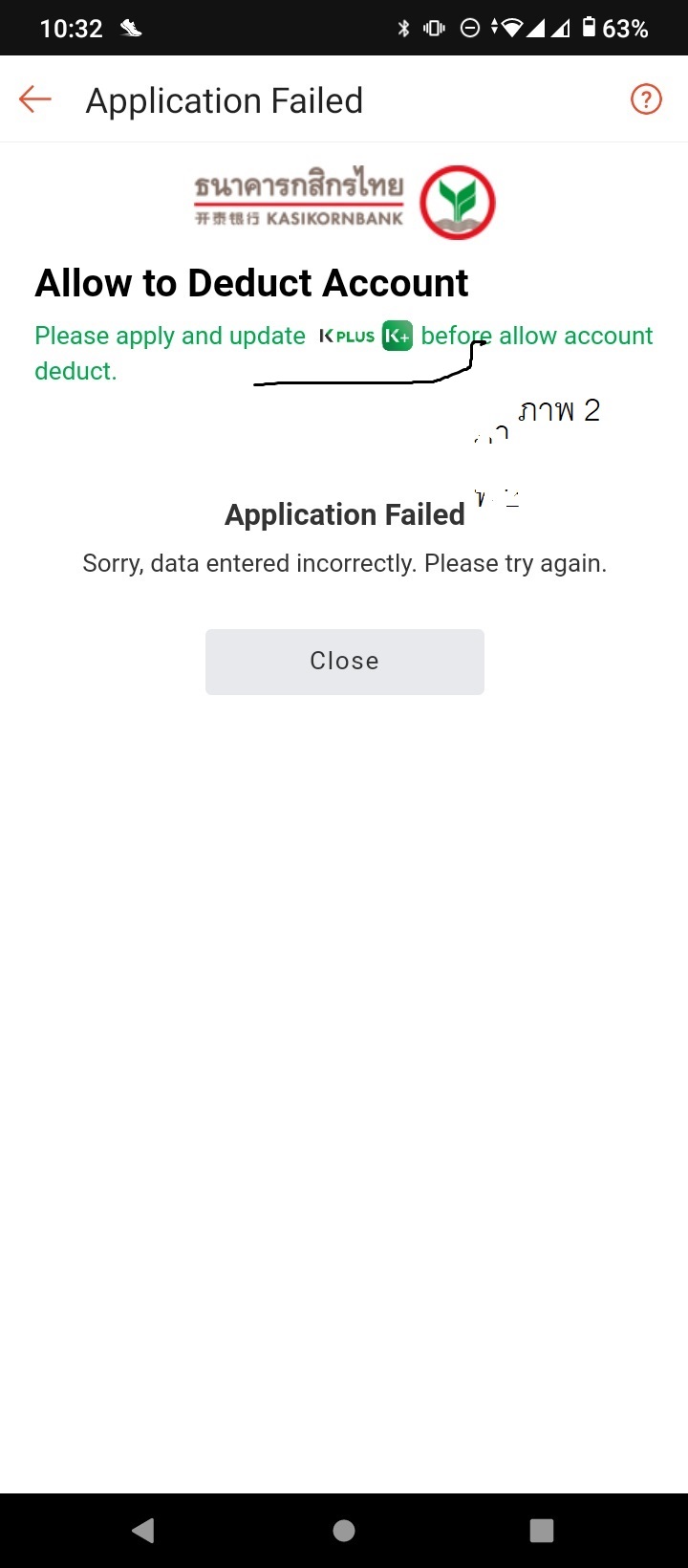ยืนยันตัว ตนผูกบัญชี ธนาคาร กสิกร กับ shopee ไม่ผ่าน มีคำทักไม่ผ่านเพราะ ต้อง updat kplUS ตามภาพ2