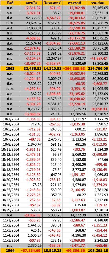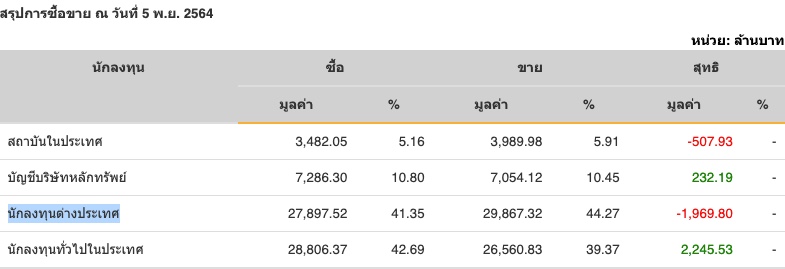 Sinthorn Summary : 5/11/2564 : ต่างชาติขายสุทธิ -1,969.80 ลบ.