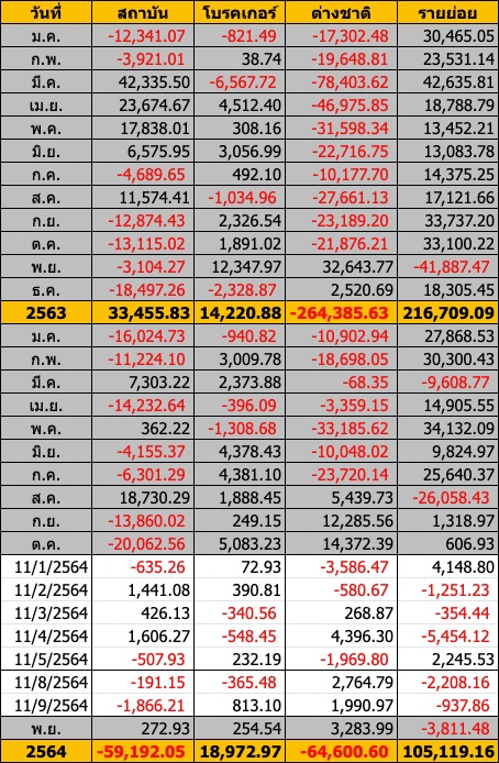 Sinthorn Summary : 30/11/2564 : ต่างชาติขายสุทธิ -3,535.33 ลบ.