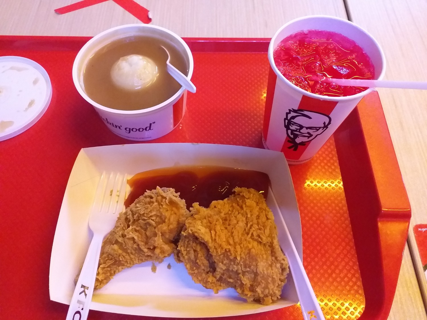 ไก่ทอด kfc ที่ร้าน ส่วนตัว ตึก 40000 ล้าน แก้มือจากเมื่อวานที่อดกิน กับ ncap ดันวิ่งซะวันนี้. Awc ยังไม่กลับไป 6 บ. และ