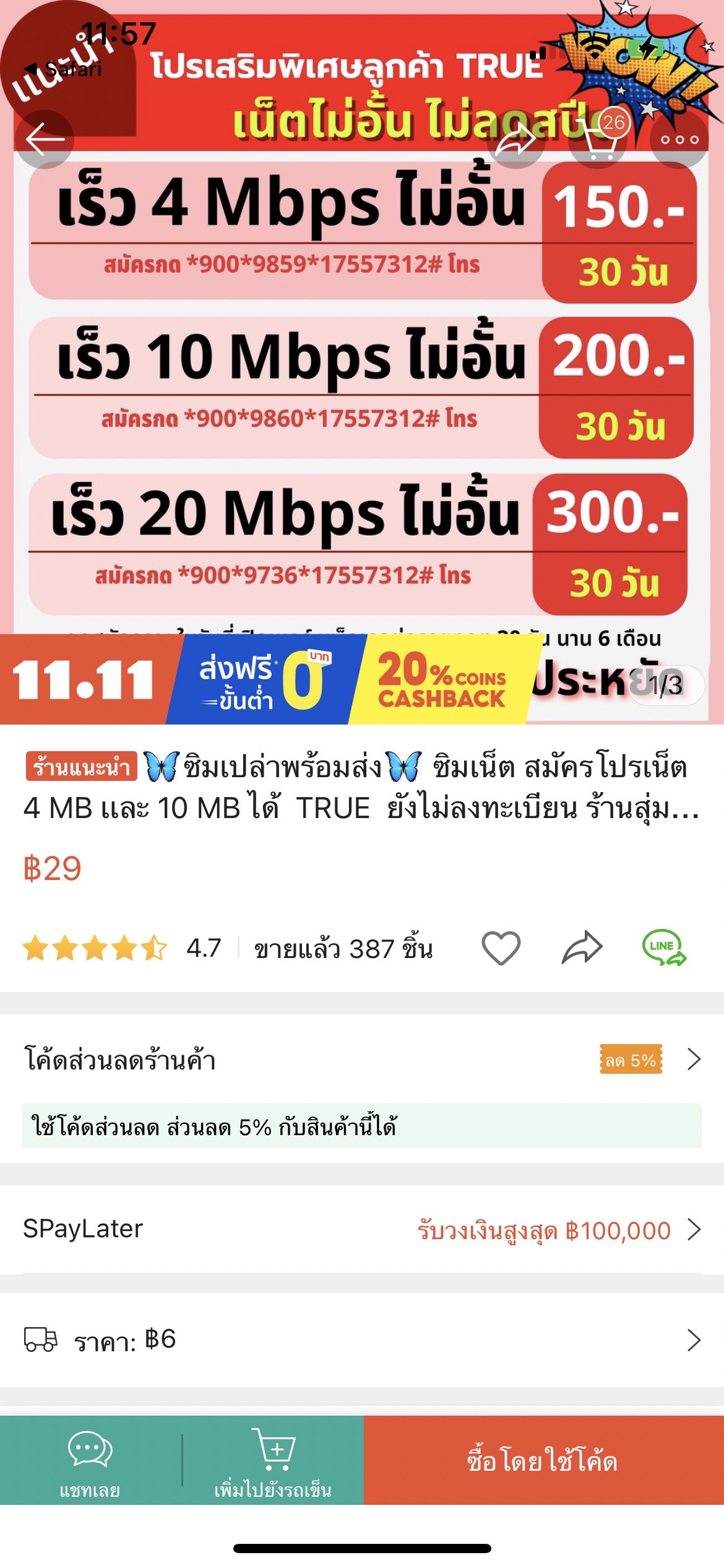 ซิมเติมเงินใช้เน็ตแบบรายเดือน30วัน4mbps 150บาท ช้ามากกก แรกๆคือดี หลังๆมาไม่ได้เลย จะเปลี่ยนแพคก็ไม่ได้อีก สงสัยต้องย้ายค่ายแล้วมั้ง