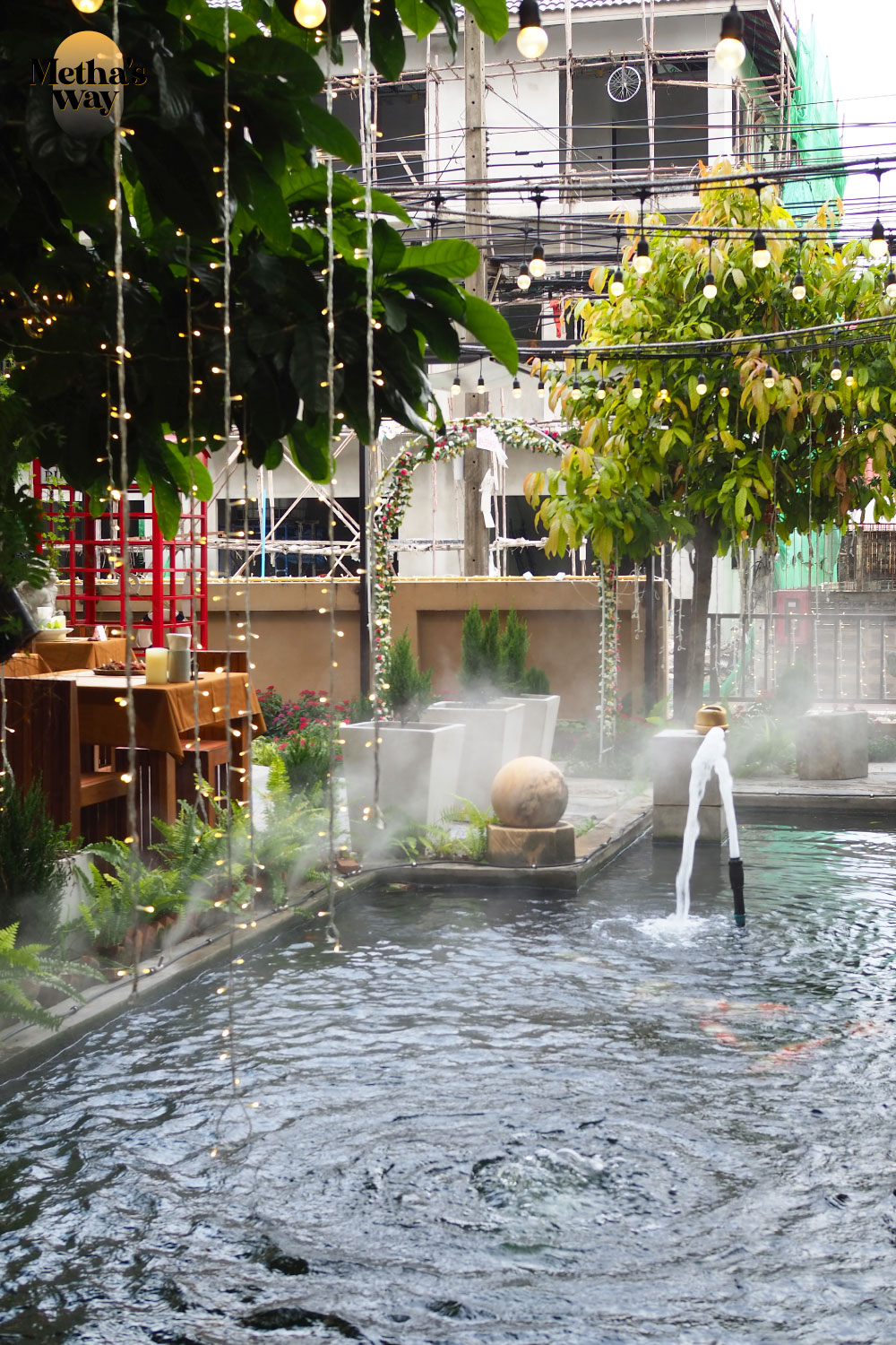 ซึ่งโต๊ะทุกตัวจะอยู่ริมบ่อปลาคราฟ