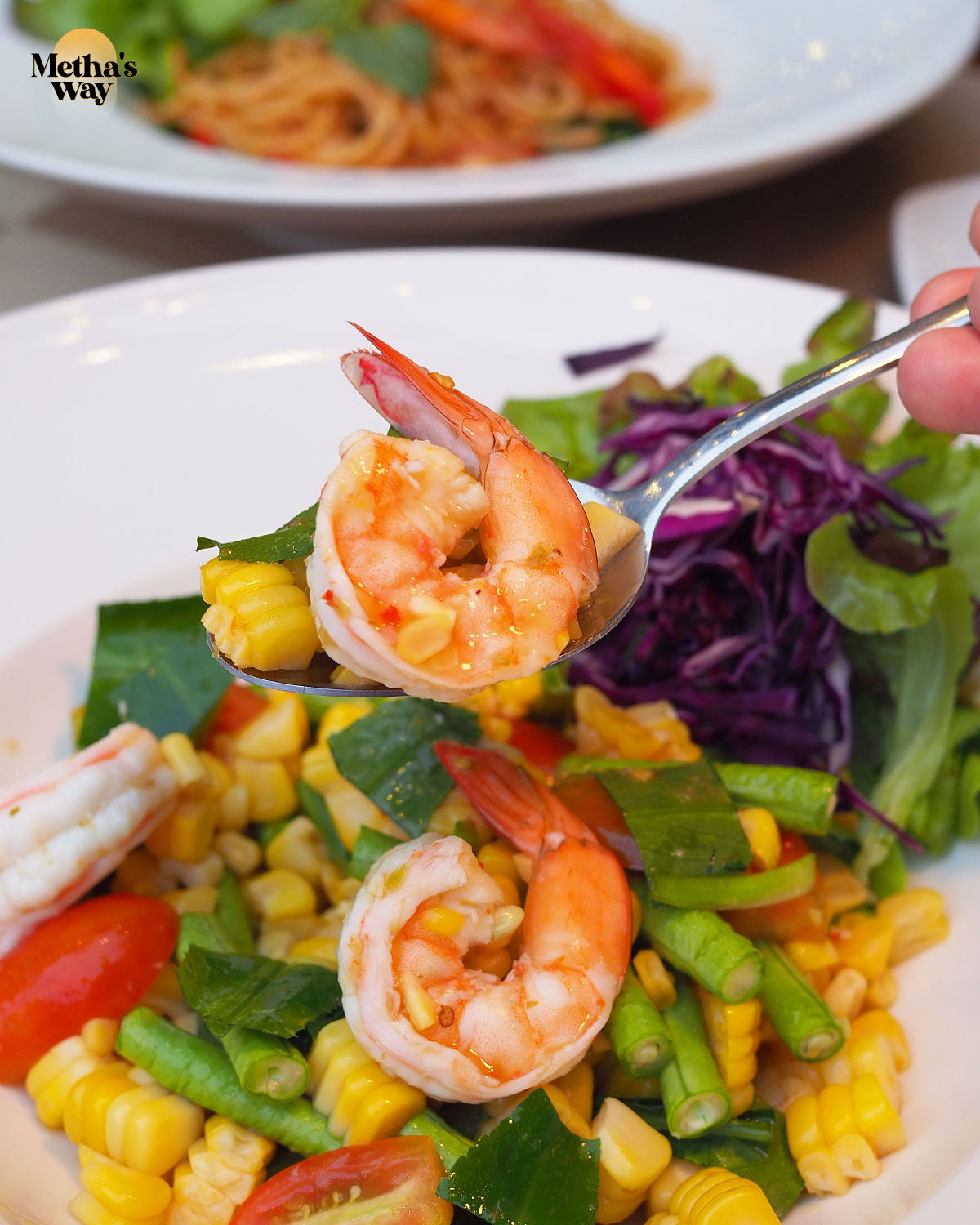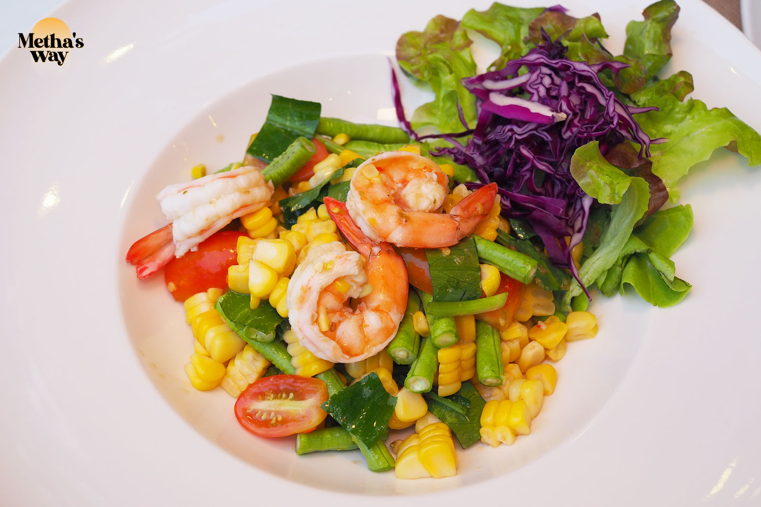 ส้มตำข้าวโพดกุ้งสด (129.-)สำหรับจานนี้จะไม่ได้เปรี้ยว หรือเผ็ดมาก