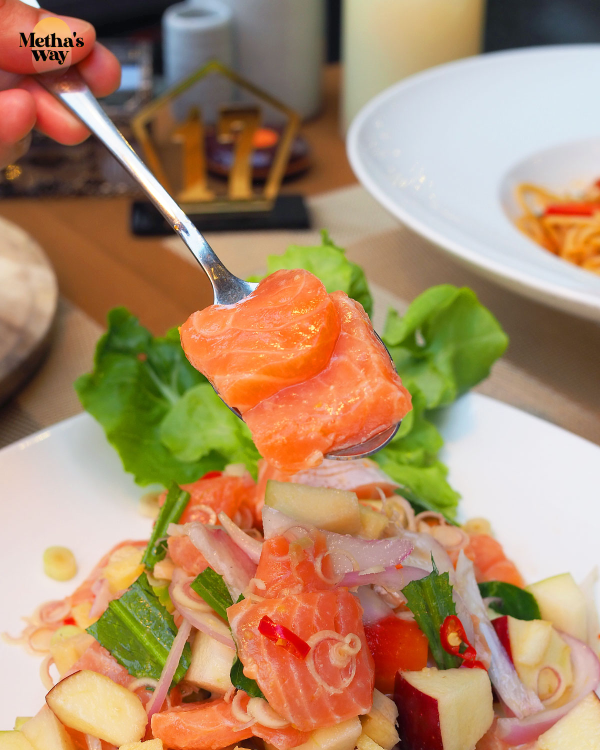 เนื้อแซลมอนกลิ่นหอมมาก กินคู่กับทาร์ทาร์ซอสคืออร่อยลงตัว