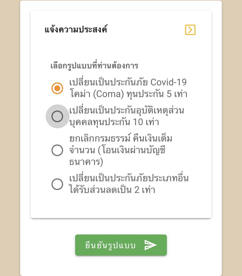 SMS เปลี่ยนความคุ้มครองกรมธรรม์ โควิท