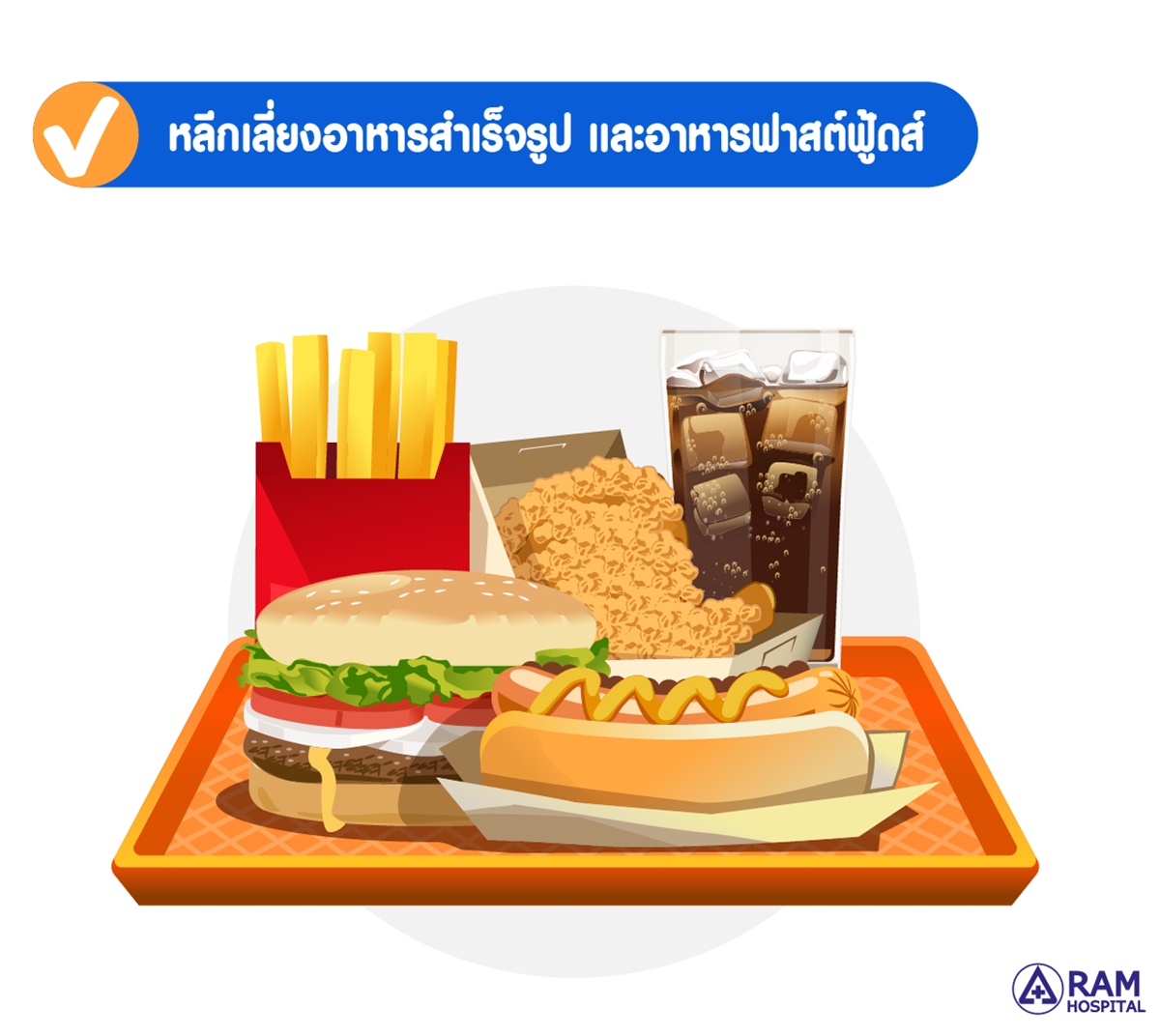 * หลีกเลี่ยงอาหารสำเร็จรูป และอาหารฟาสต์ฟู้ดส์