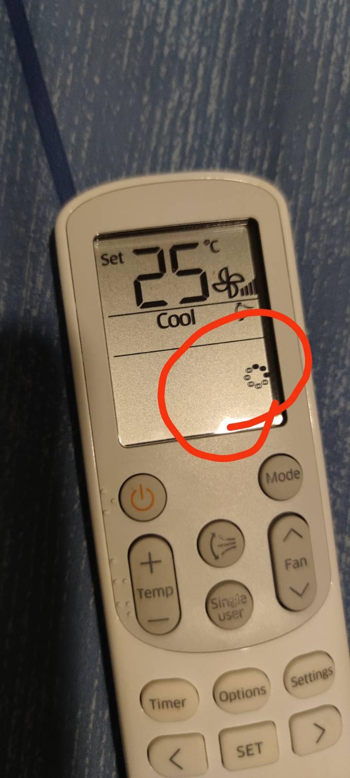 มีใครพอจะรู้ไหมคะว่าสัญลักษณ์ที่วงไว้คือสัญอะไร พอดีมือไปพลาดกดโดนรีโมทแอร์แล้วมันขึ้นไฟตรงรูปที่วงไว้พอใช้รีโมทปิดแอร์แต่แอร์ไม่ปิดแค่ไฟที่วงไว้หายไปแต่แอร์ยังทำงานอยู่ ดูที่รีโมทแอร์ก็ไม่มีอะไรผิดปก
