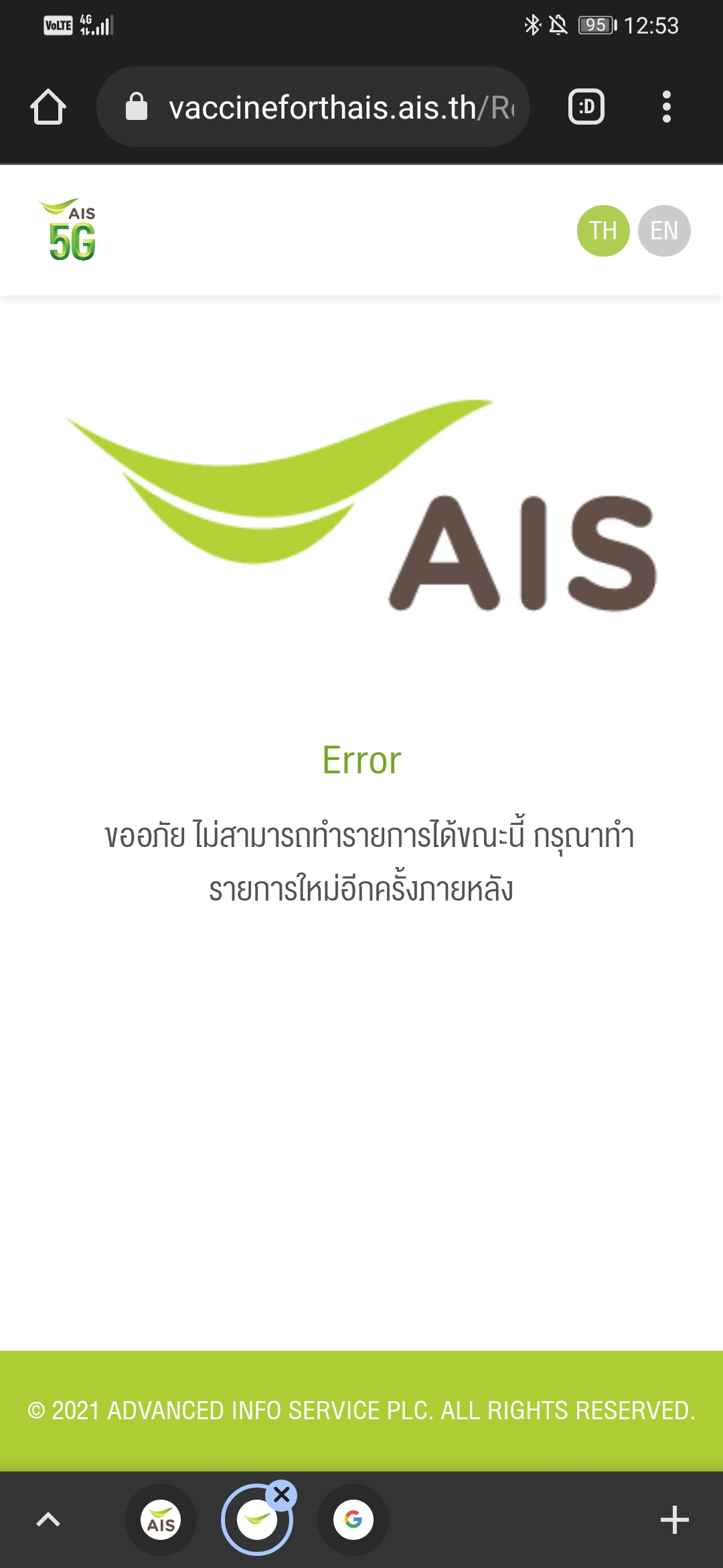 สอบถามครับผมลงทะเบียนวัคซีนกับ Ais ไม่ได้สักที มีใครเป็นบ้างครับ