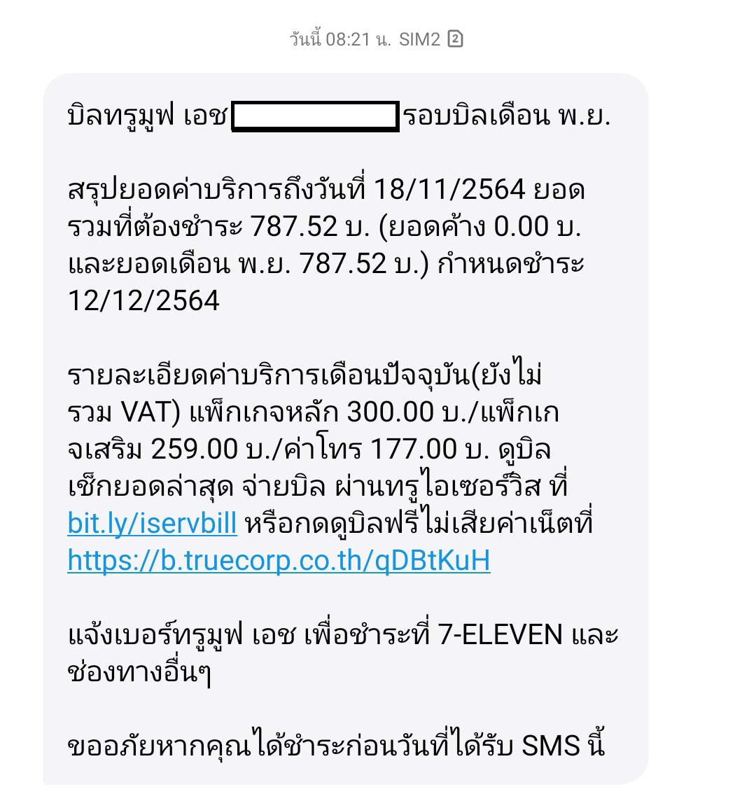 พอมาวันนี้ 22 พฤศจิกายน บิลเเจ้งค่าบริการ มาเเล้วจ้า 787.52 บาท