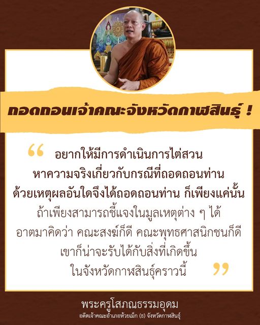 ด้วยเหตุปมปลดเจ้าคณะจังหวัดที่ ไม่มีการตั้งอธิกรณ์ สอบถามไป คำตอบตอบได้กลับมารก็ไม่ชัดเจนไม่รู้ต้นสายปลายเหตุที่แท้จริงว่าปลดเจ้าคณะจังหวัดทั้ง 3 รูป เพราะเหตุใด ตอนนี้ ดูๆไป ช่างเหมือนทุกขลาภ ของพระท่านจริง