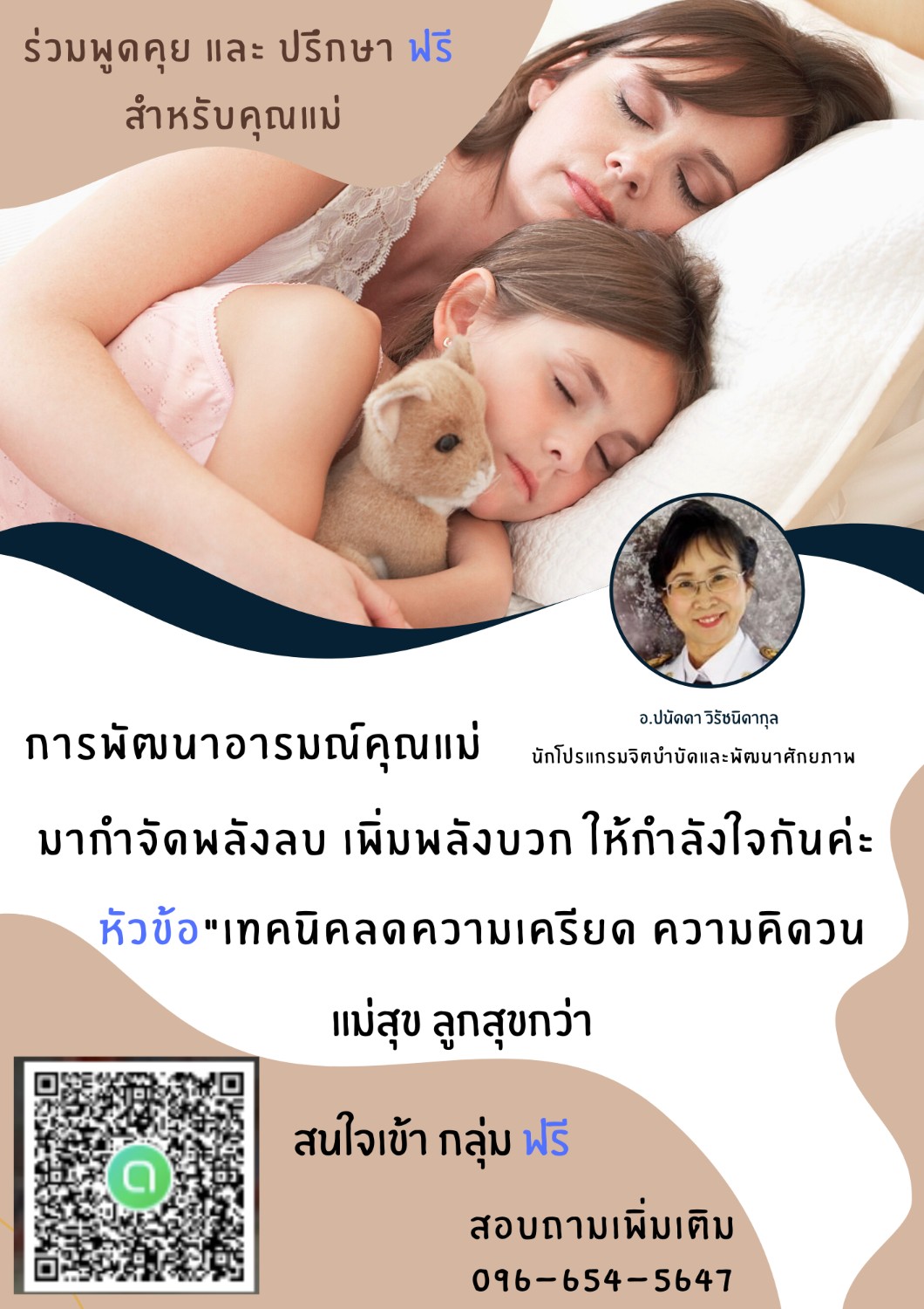 กรุ๊ปพัฒนาอารมณ์คุณแม่ เทคนิคลดความเครียด ความคิดวน แม่สุข ลูกสุขกว่า ฟรีไม่มีค่าใช้จ่าย มีอ.ปนัดดา วิรัชนิดากุล