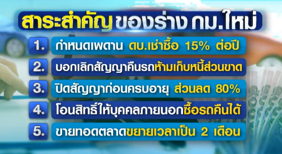 สคบ.เร่งแก้สัญญาเช่าซื้อรถ คุมดอกเบี้ย-เบี้ยปรับ-ขายทอดตลาด : ผู้บริโภคได้ประโยชน์ แต่ไฟแนนซ์กระอัก