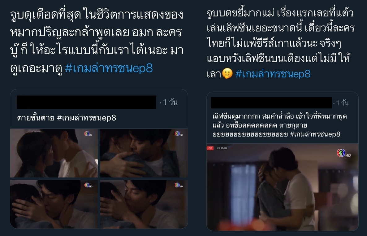 ไม่เคยเห็นหมาก-แต้วจูบแบบนี้เลยในละครเรื่องก่อนๆ ส่วนตัวยกให้ฉากจูบในเกมล่าทรชน