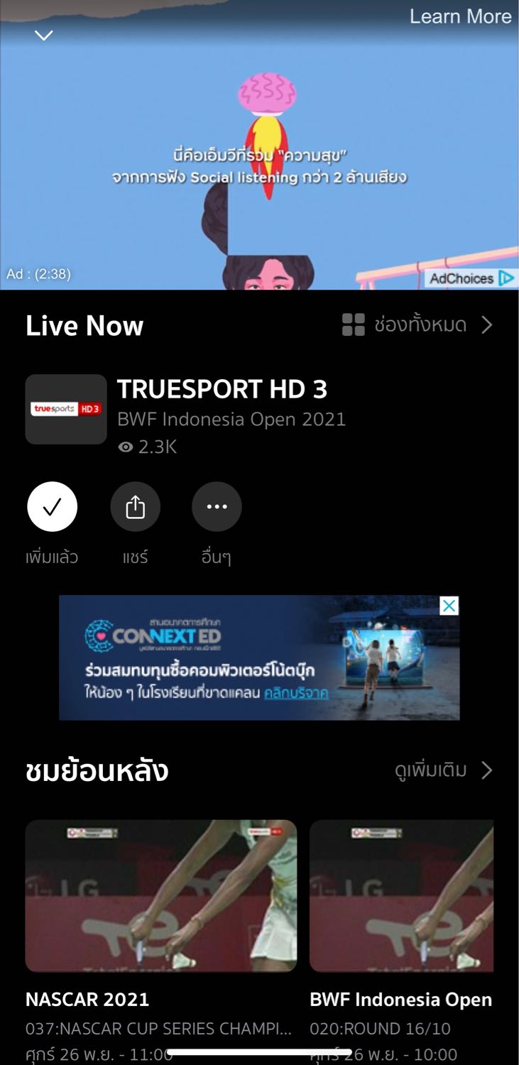 มีสายเข้า วางสาย จะกลับไปชม รอไปอีก เกือบ 3 นาที
