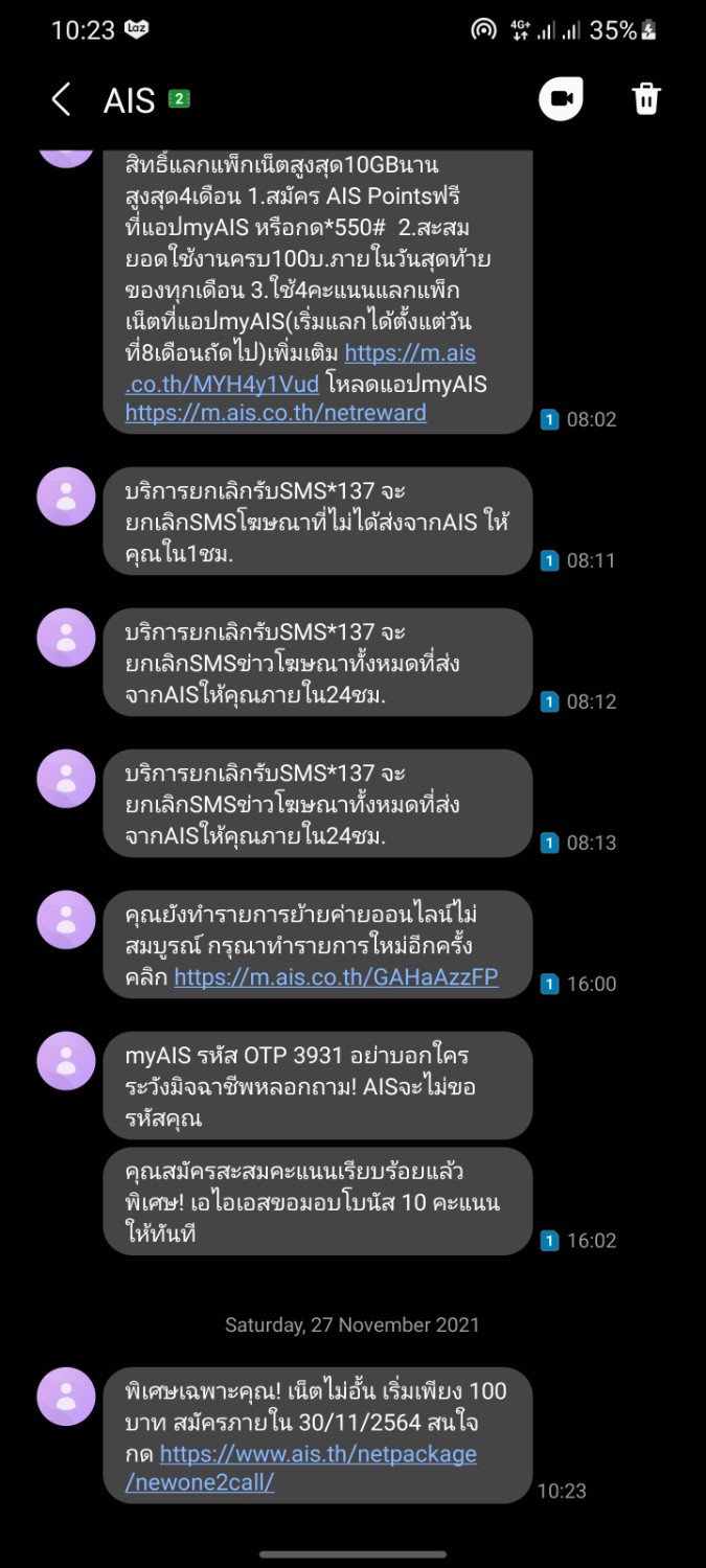 ปิดข้อความ โฆษณา AIS ไปแล้ว ยังส่งข้อความมาให้สมัครตลอด ต้องแก้ไขยังไงครับ เริ่มรำคาญแล้วครับ