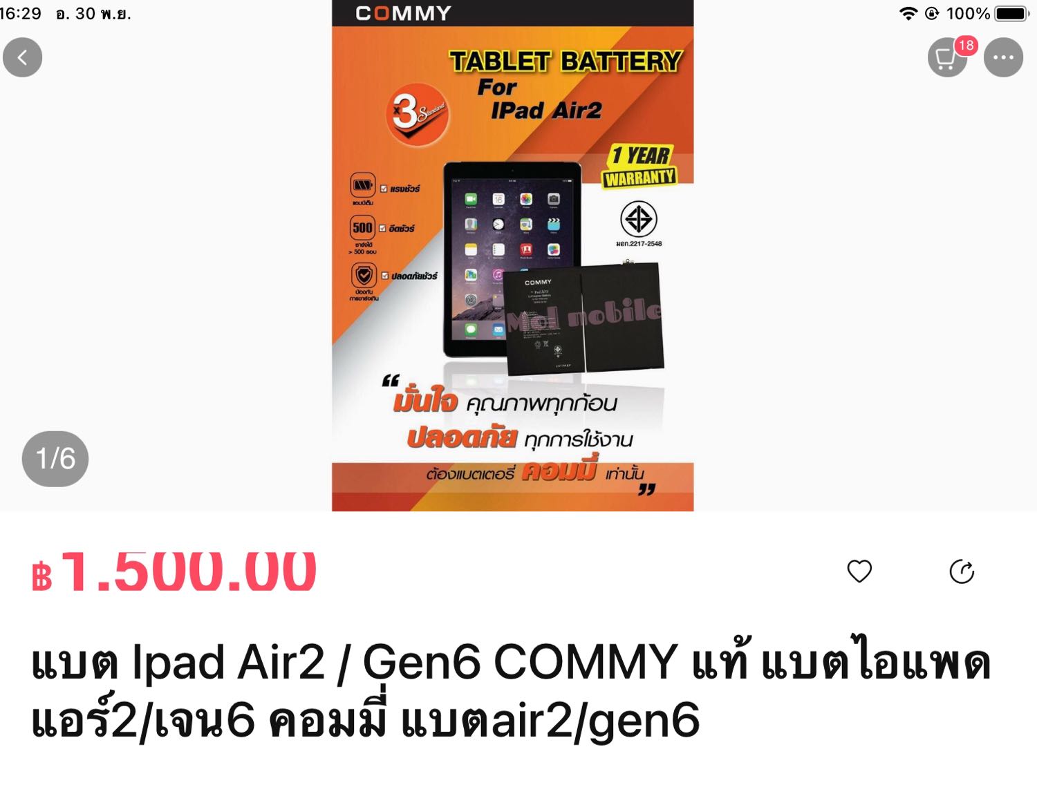 ไอแพดโมเดลA1954ใช้แบตรุ่นนี้ได้ไหมครับ