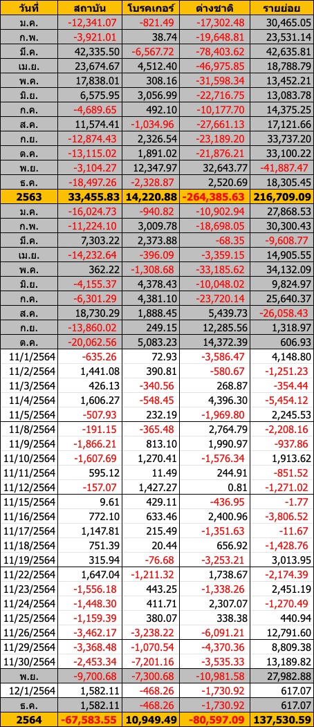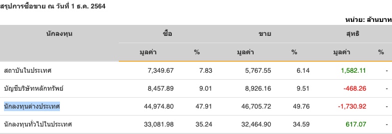 Sinthorn Summary : 1/12/2564 : ต่างชาติขายสุทธิ -1,730.92 ลบ.