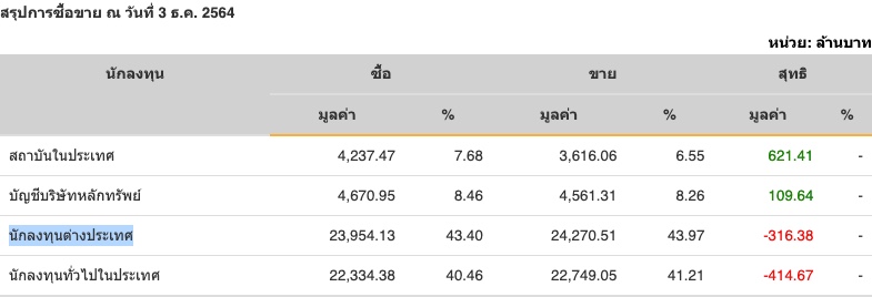 Sinthorn Summary : 3/12/2564 : ต่างชาติขายสุทธิ -316.38 ลบ.