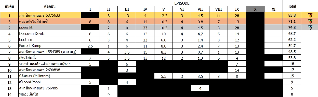 ตารางคะแนนหลังจากโดนคุณมิลินทุบนาฬิกาไปครับ