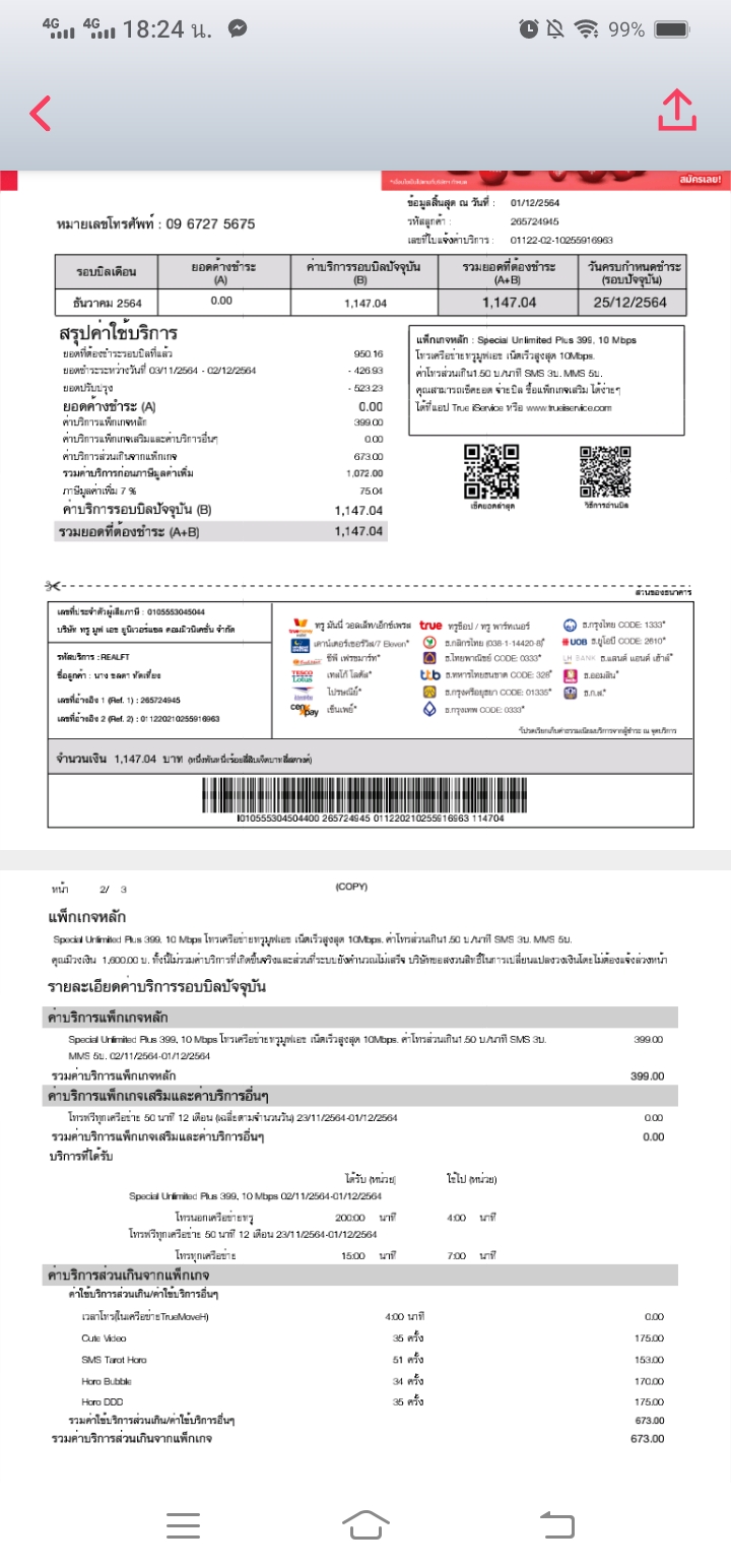 สงสัยมากdtac จ่ายบิลปุ๊บ ครบยอด(จ่ายออนไล) บอกมียอดค้างชำระอีก 5 บาท