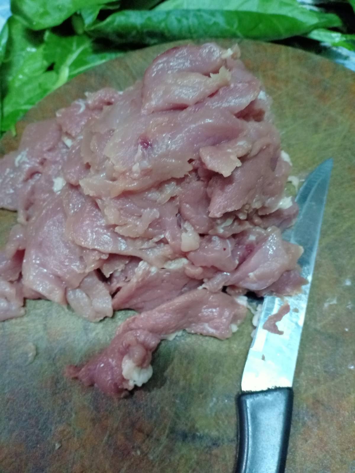แล้วก็มาหั่นหมูบางๆ