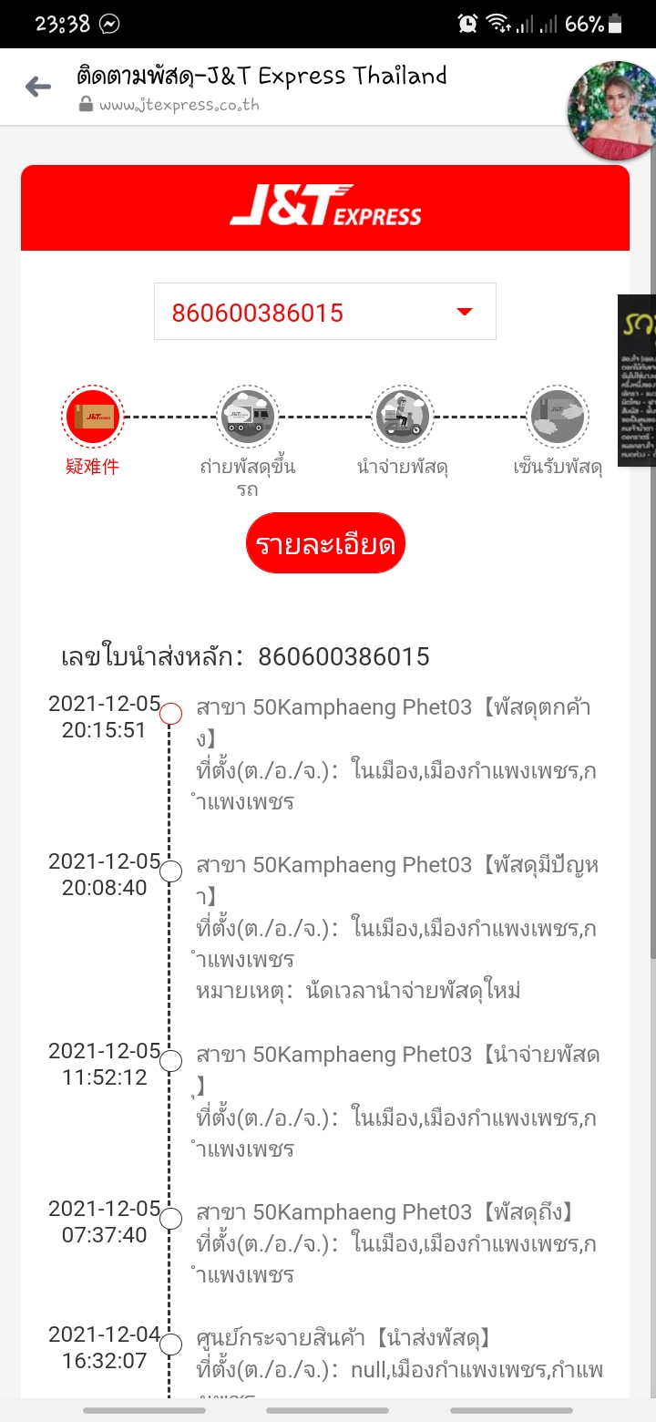 ปล. ได้ข่าวมาเยอะเกี่ยวกับการขนส่งของJ&T ทั้งบริการที่เคยได้รับแรกๆให้เราออกไปรับของเองเกือบ4กิโลเมตร แล้วพนักงานก็ฝากของไว้เราก็ต้องไปตามหาเองตอนแรกคือรู้สึกไม่โอเคแล้วฝากไว้กับใครไม่รู้แทนที่จะรอเราไปรับของ แต่นี้ให้เราตามหาของเองแย่มาก