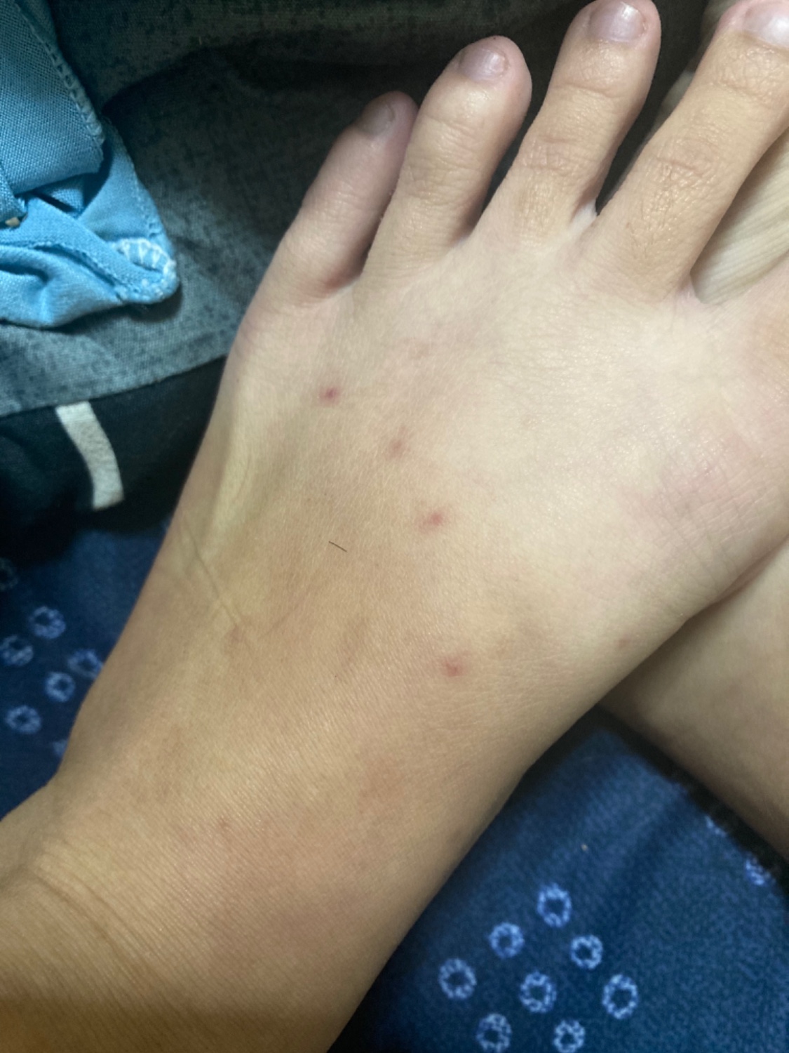 เป็นผื่นทั้ง2ข้างเลย แต่ตรงผื่นเล็กๆไม่คัน ตรงตุ่มจะมีคันบ้าง ผื่นเป็นผื่นราบ ตอนแรกผื่นที่เท้าขึ้นแล้วก็หายจางไปทิ้งรอยไว้ แต่ซักพักก็มีตุ่มแดงใหญ่ๆขึ้น1ตุ่ม บวมใหญ่กว่าตุ่มอื่นๆ ละก็มีตุ่มอีกแต่อันน
