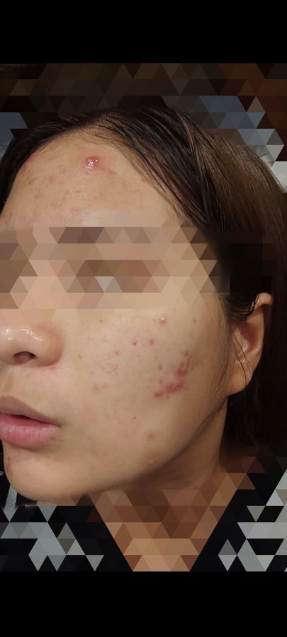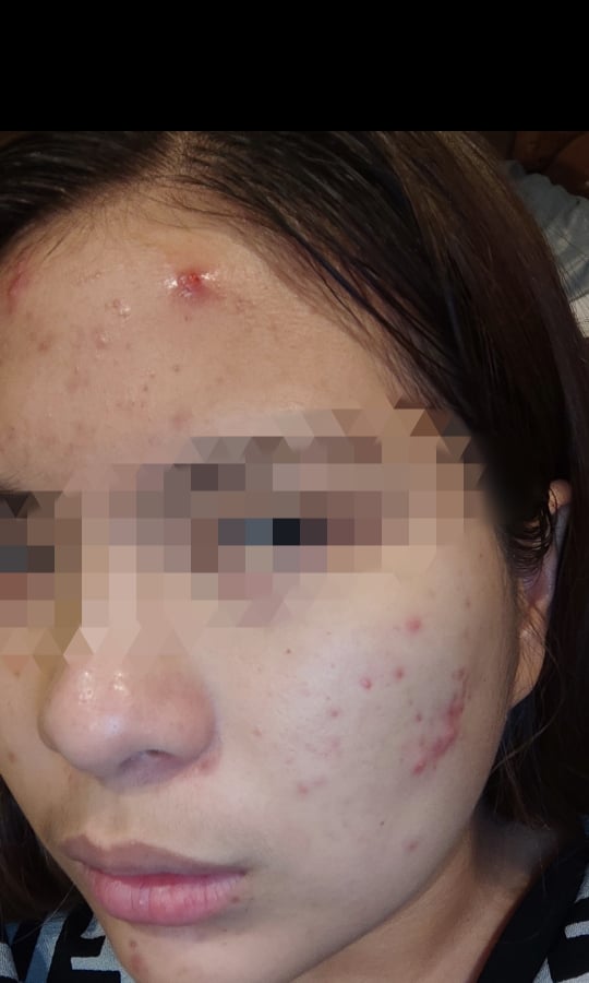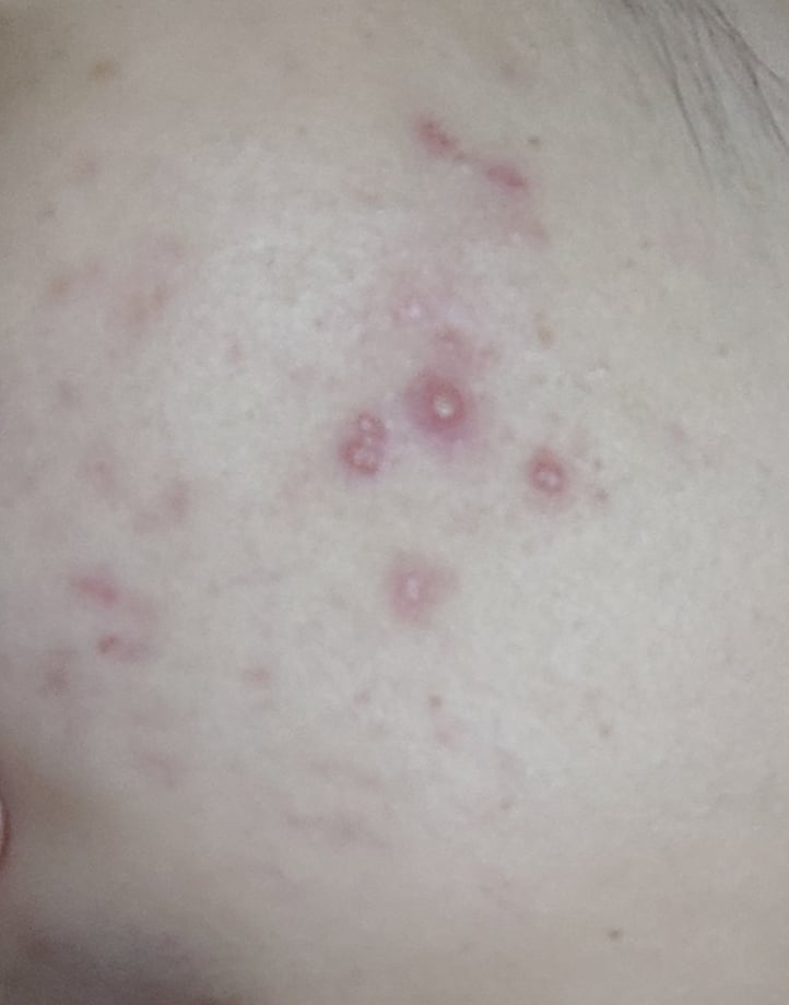 ด้านบนเป็นรูปตอนสิวเห่อขึ้นใหม่ๆ เนื่องจากใช้ครีมมั่วหรือสาเหตุอะไรบางอย่าง จากนั้นเป็นปีก็ยังไม่หาย