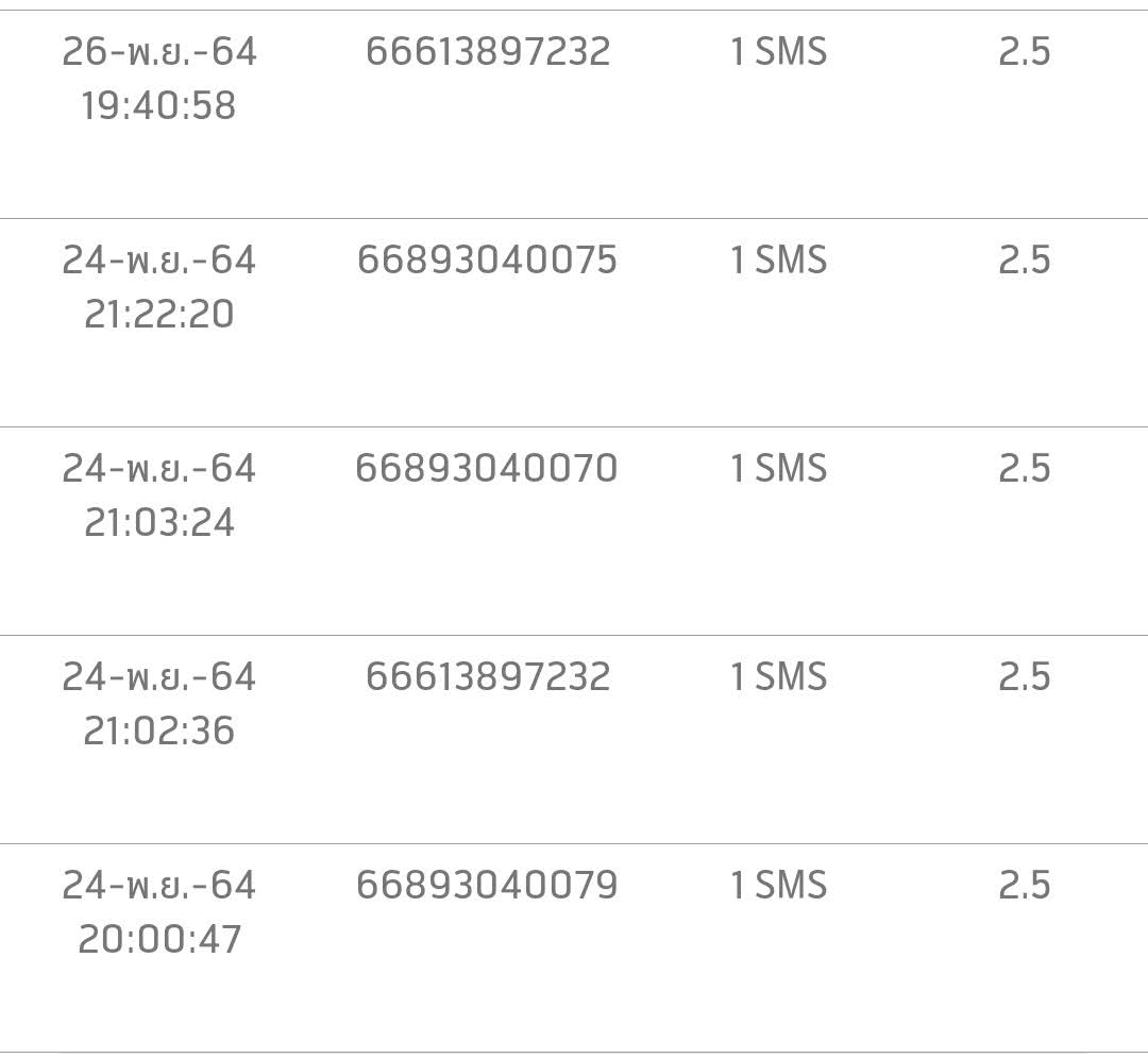 มีการส่ง SMS ไปหมายเลขแปลกๆ ที่ไม่รู้จัก ตรวจสอบประวัติการส่งในเครื่อง ก็ไม่พบว่าเราส่งออกไป อยากให้ตรวจสอบให้ทีครับ ว่ามันคือหมายเลขอะไร เป็นบริการอะไรที่เราไม่ได้สมัครหรือเปล่า เพราะลองค้นกระทู้เก่าๆดู มีคนถูกเรียกเก็บจากหมายเลขเดียวกับผมหลายคนอยู่เหมือนกันครับ