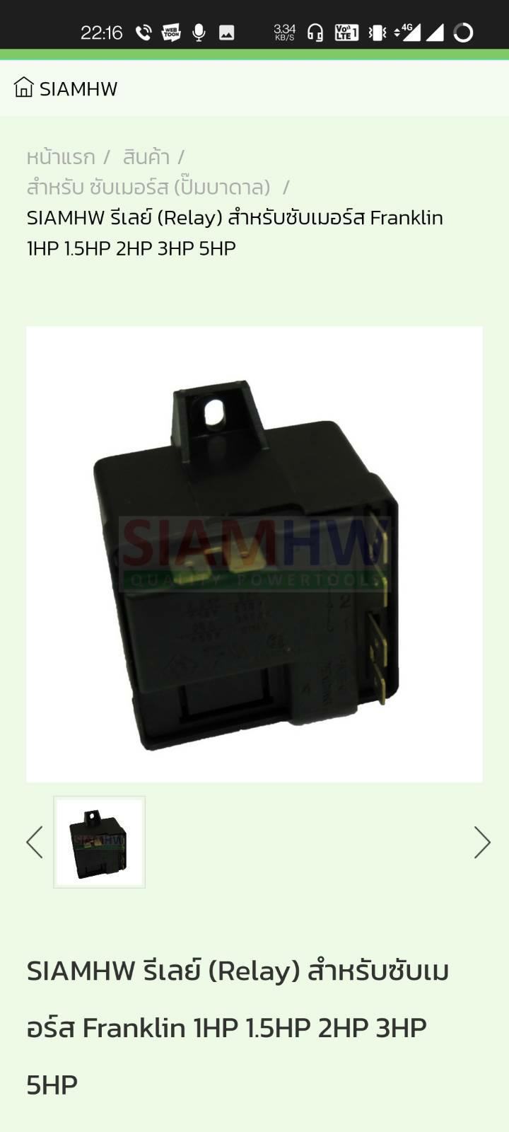 รีเลย์franklin 1 hp ใช่อันอื่นได้ไหม