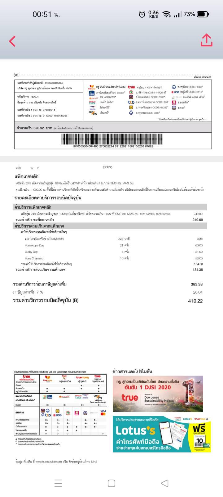 ซิมทรูมูฟสมัครบริการ SMS เสียตังไป130กว่าบาท