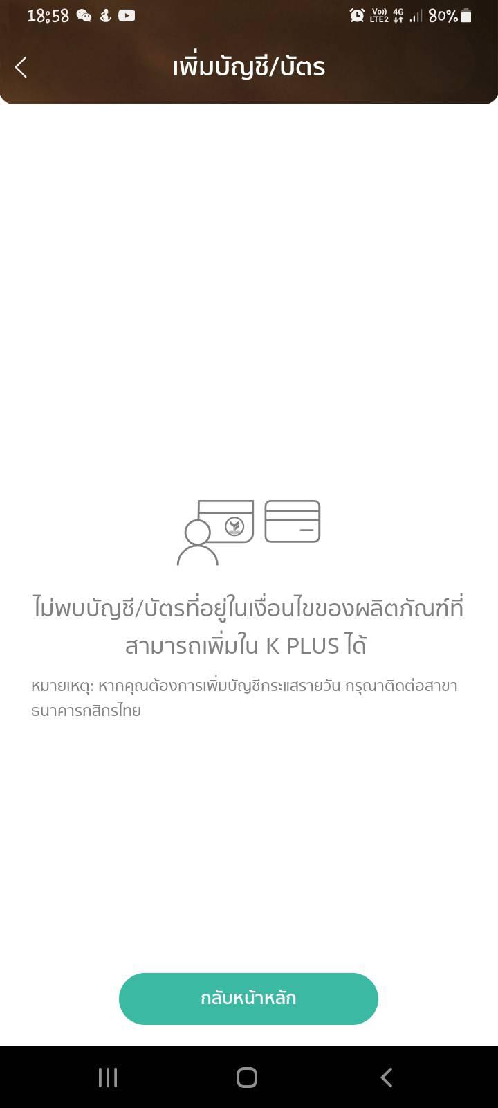 เพิ่มบัตรบนแอพkplusไม่ได้เกิดจากอะไร?