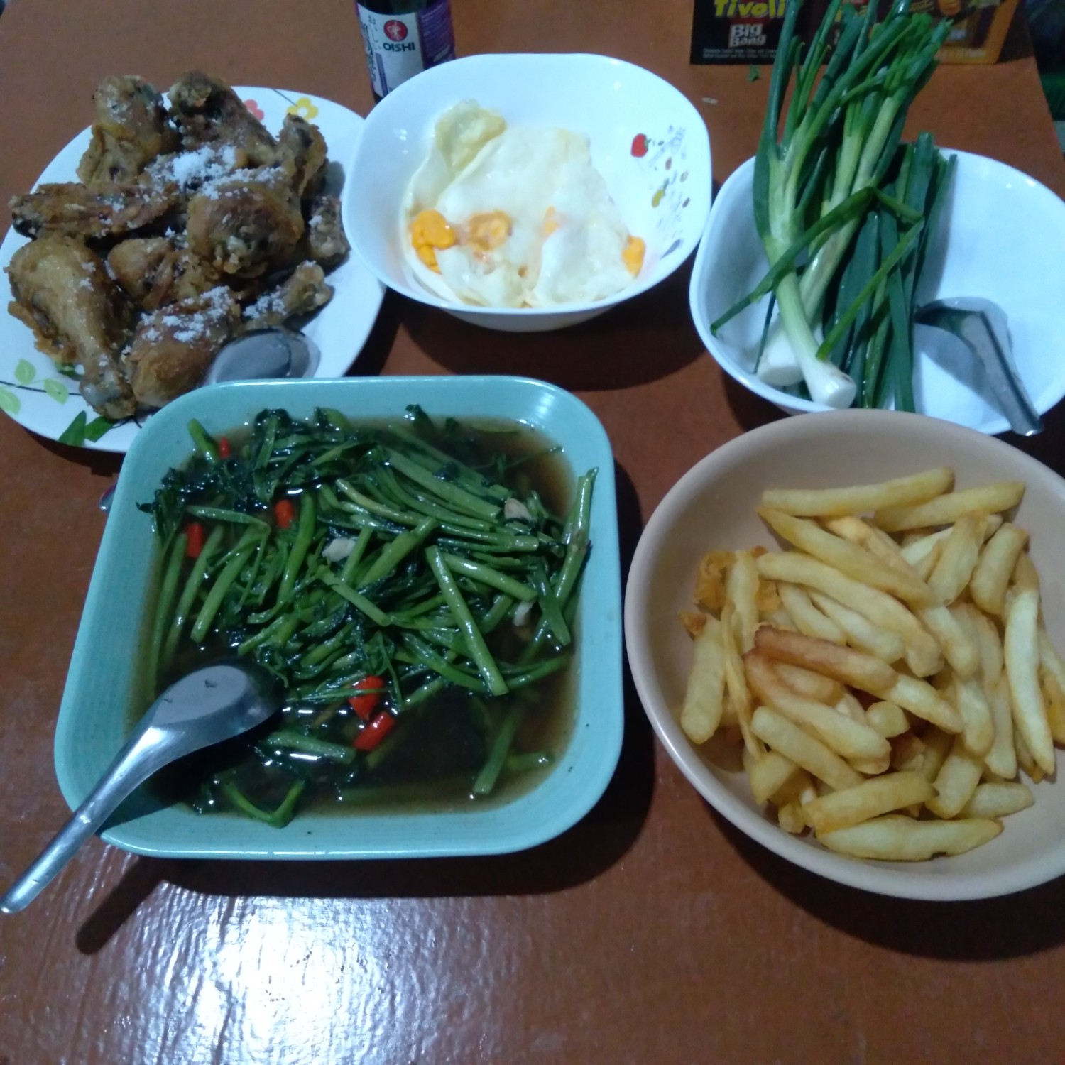 สวัสดีครับทุก ๆ ท่าน วันนี้อากาศเย็น ๆ ชวนท่าน ผบ.ทำข้าวต้มกุ๊ยกินเป็นมื้อเย็นอีกครั้งครับ กับข้าวแบบง่าย ๆ เหมือนเดิม ผักบุ้งไฟแดง ยำกุ้งแห้ง ไก่ทอดโรยกระเทียมเจียว ผักบุ