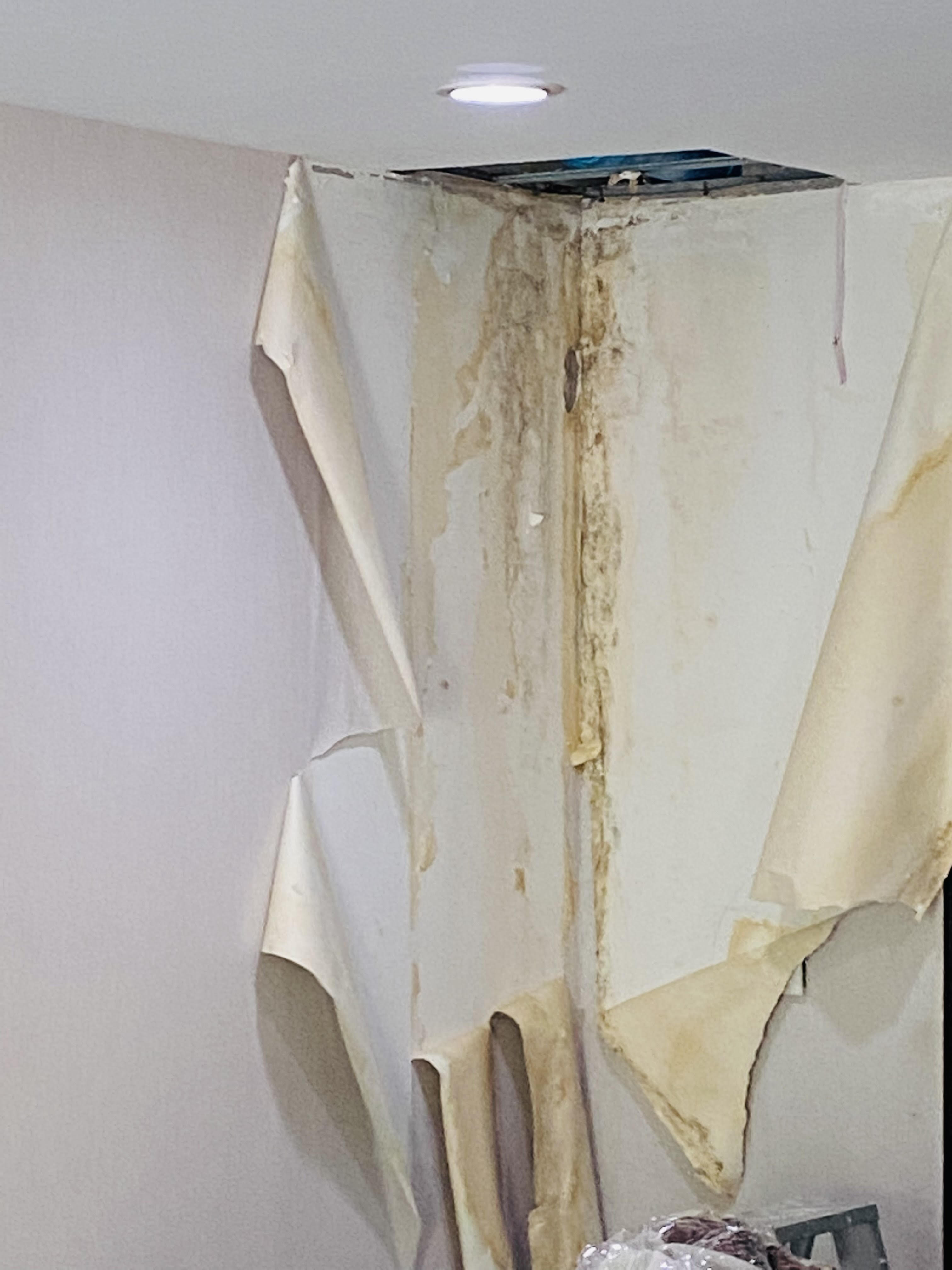 2) ตรวจการรั่วของน้ำเมื่อฝนตก ปัญหานี้ในหมู่บ้านผมเจอกันถ้วนหน้า ฝนตกหนักๆ ทีไร น้ำซึมเข้ามาในบ้าน บ้านผมซึมหนักจนเกิดเชื้อรา ปล.เคสนี้ โครงการ โทษการต่อเติมหลังบ้าน แต่ผมซ่อมหลังบ้านแล้วก็ยังมีน้ำรั่ว เลยให้ช่างมาดูเพิ่มเติม ปรากฎว่า ตามกำแพงนอกบ้านมีรอยรั่วที่ทำให้น้ำเข้ามาได้ครับ