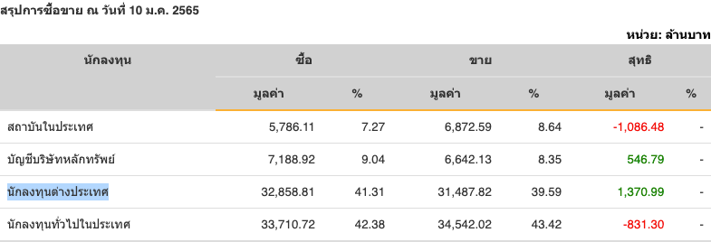 Sinthorn Summary : 10/1/2565 : ต่างชาติซื้อสุทธิ 1,370.99 ลบ.