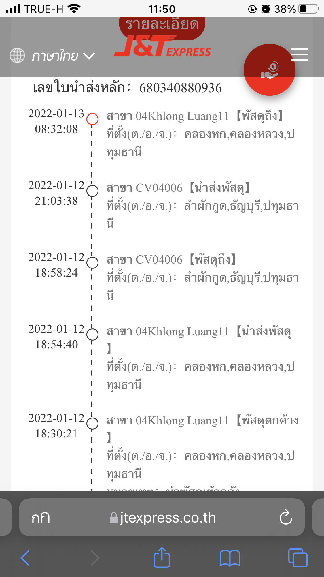 J&T ขึ้นว่าพัสดุตกค้าง