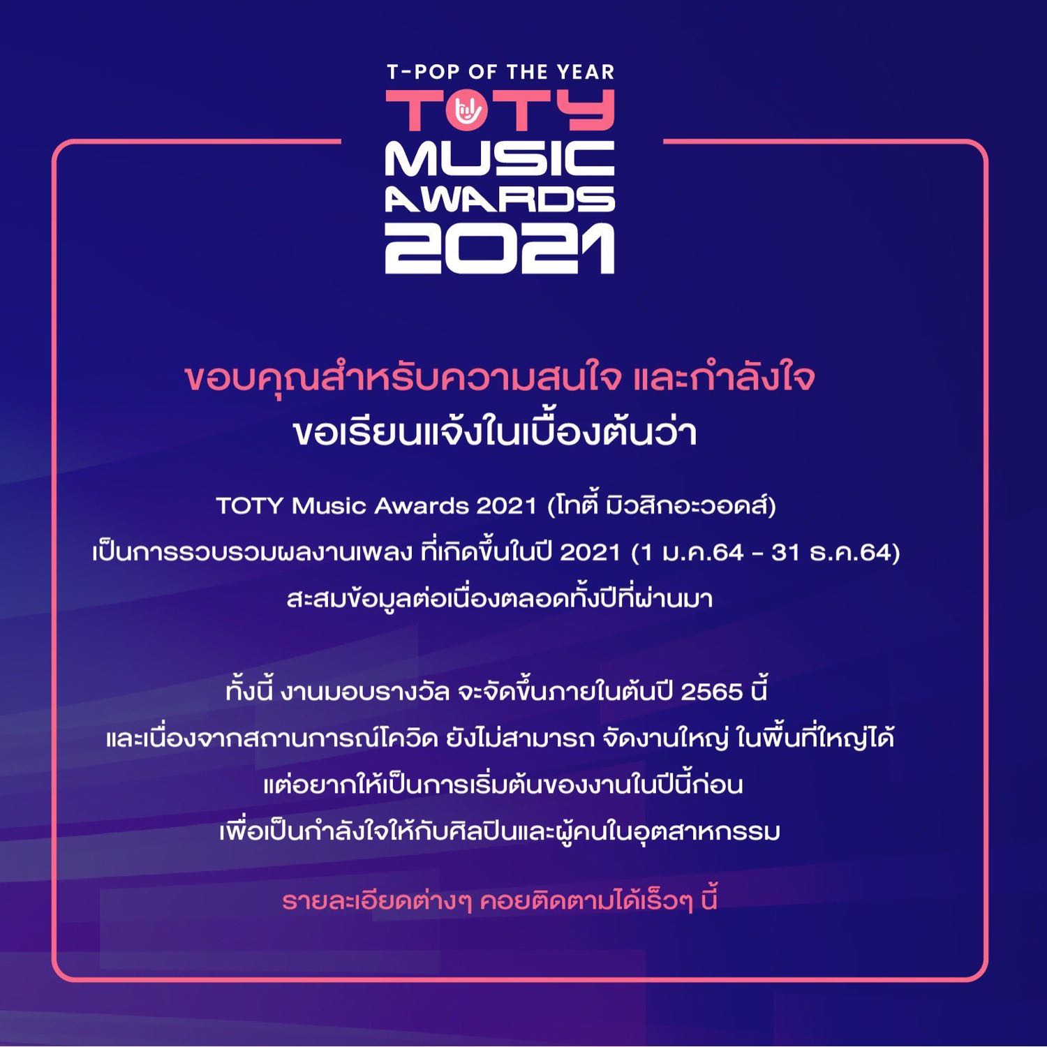 [T-POP UPDATE] คำชี้แจงแรกเกี่ยวกับงานประกาศรางวัล TOTY Music Awards 2021