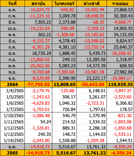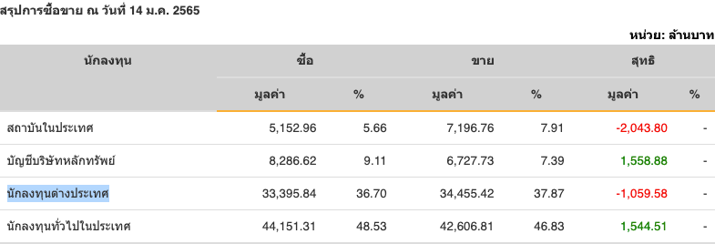 Sinthorn Summary : 14/1/2565 : ต่างชาติขายสุทธิ -1,059.58 ลบ.