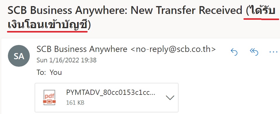 ผมได้รับ email นี้ และไฟล์แนบ แจ้งเรื่องได้รับเงินโอนเข้าบัญชี