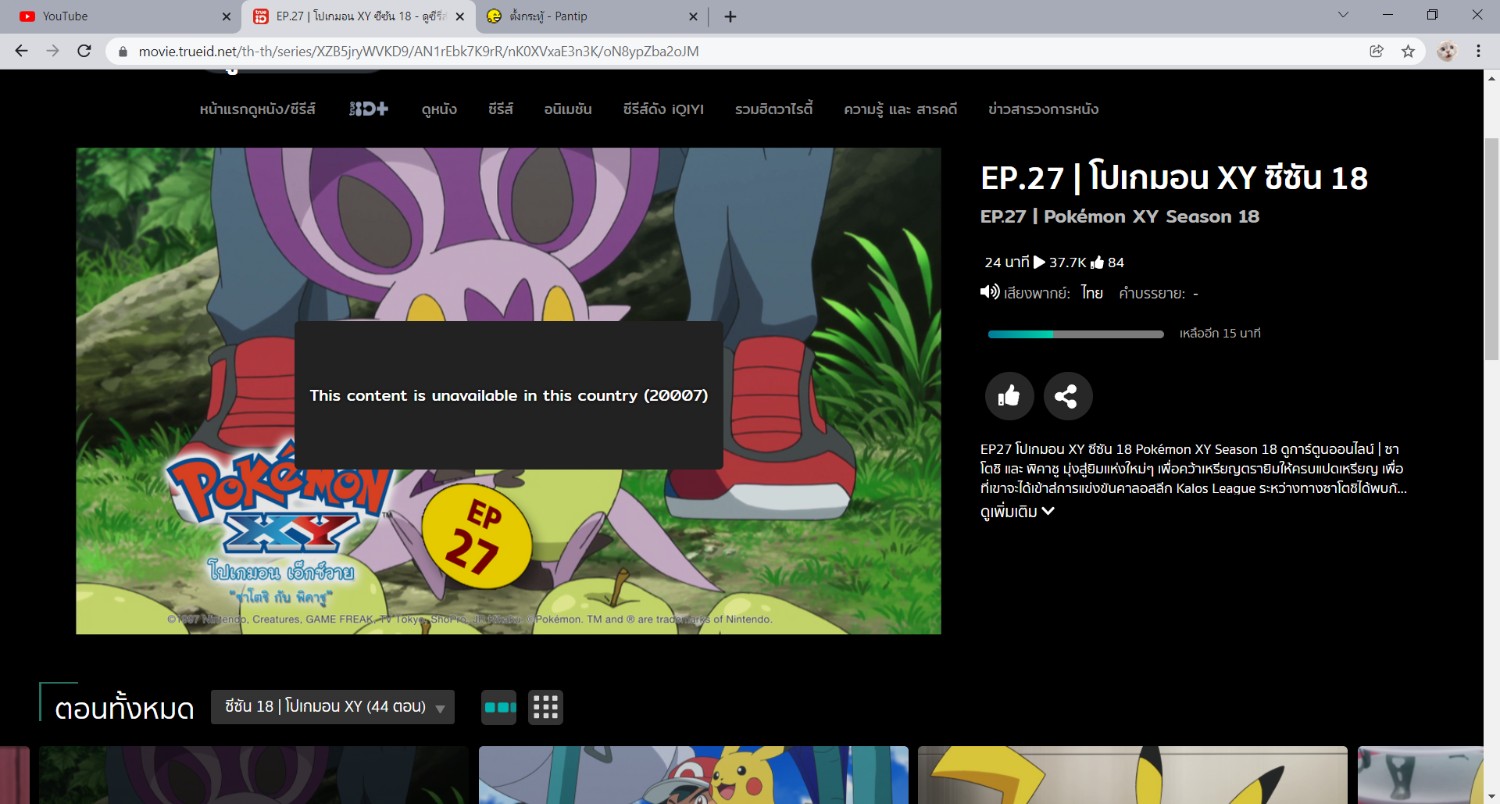 คือเมื่อวานยังดูโปเกม่อนในTrueidได้อยู่แต่พออีกวันทำไมขึ้นThis content is unavailable in this country (20007)หรอครับ