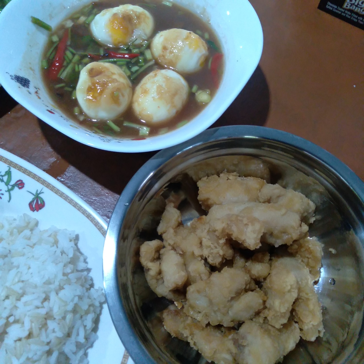 - ไข่ลูกเขย น้ำมะขามเปียก+น้ำตาลปี้บ+พริก