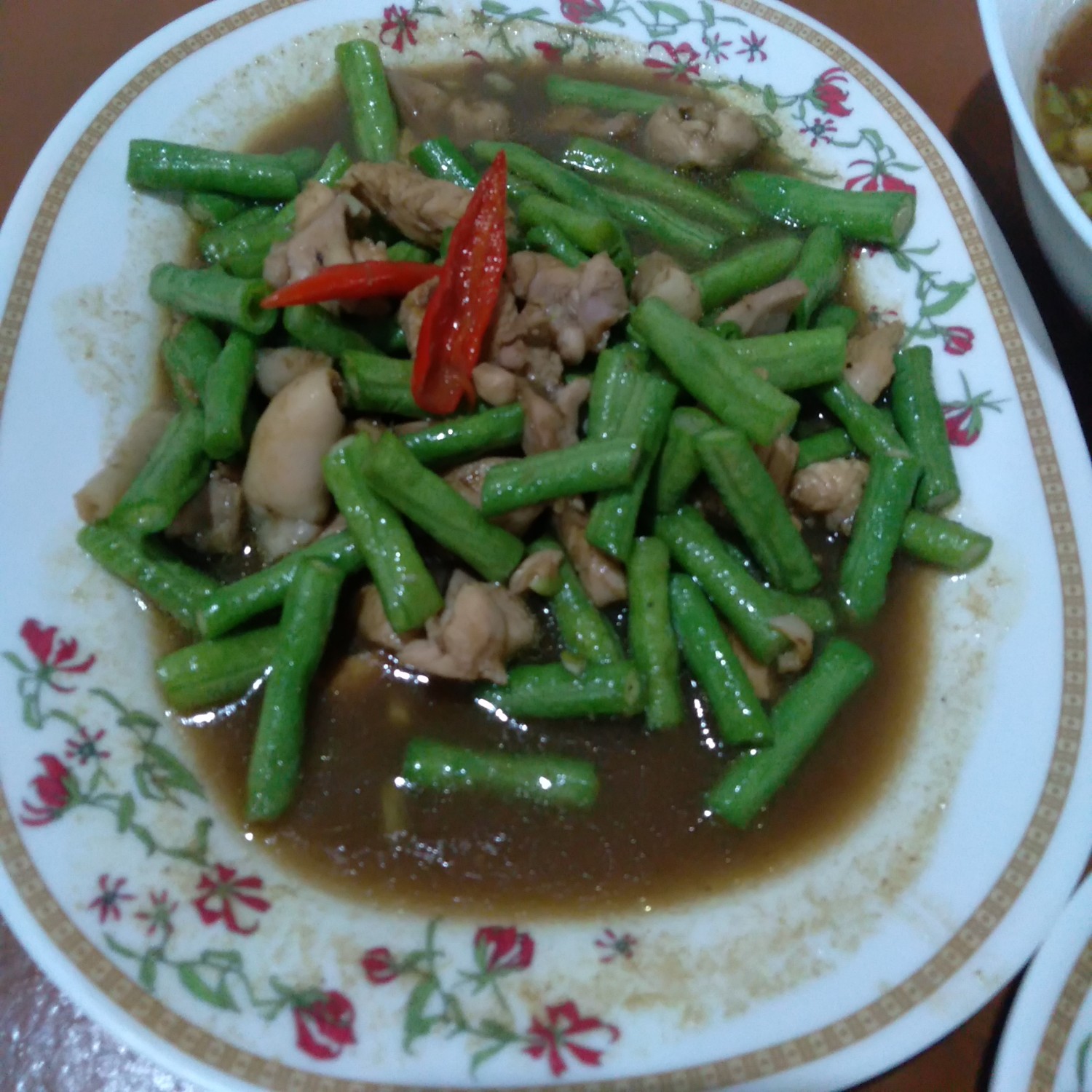 - ผัดพริกแกงถั่วฝักยาว +ไก่ +พริกสดนิดหน่อย
