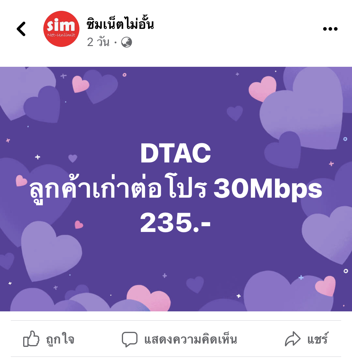 เน็ตดีแทค30mbไม่อั้นไม่ลดสปีดลดความเร็วเอง