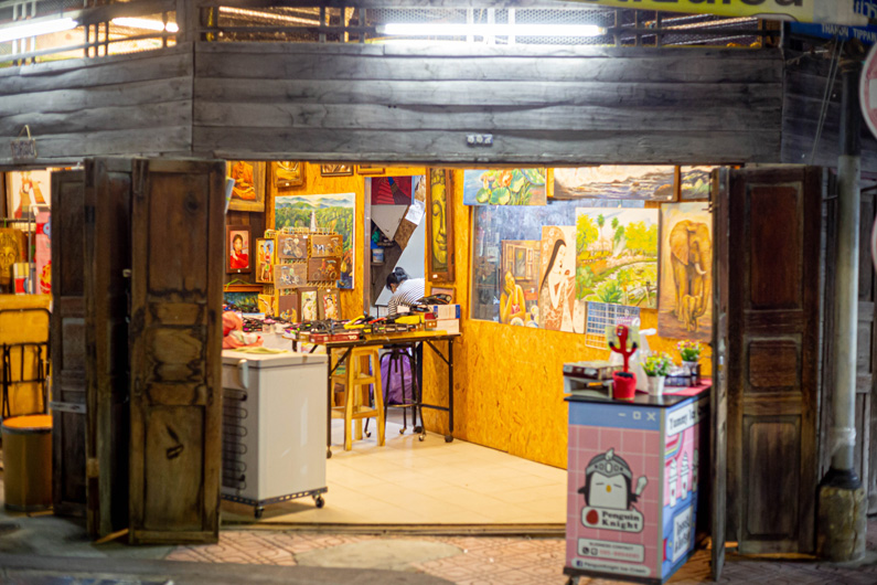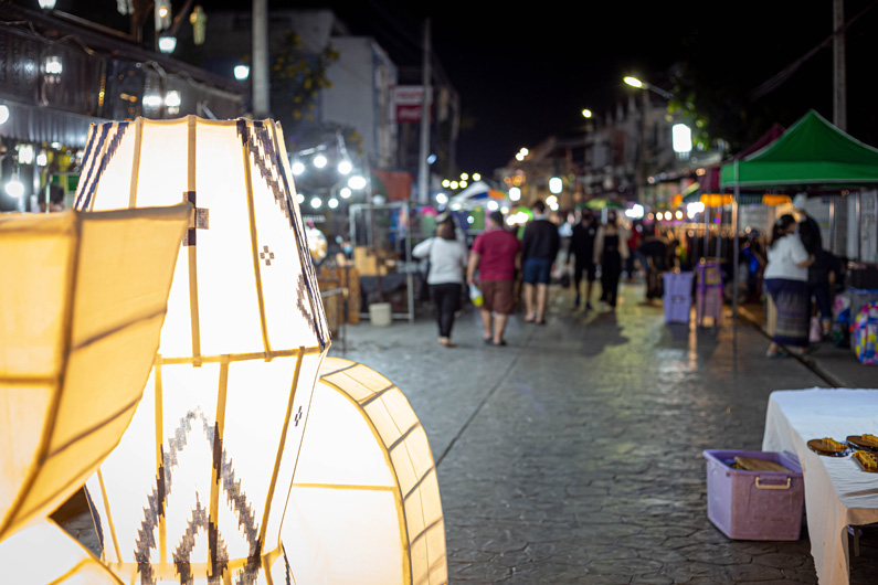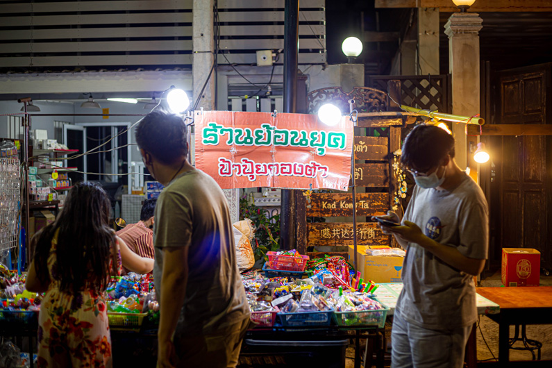 ถนนคนเดินกาดกองต้า ที่มีสินค้าพื้นเมืองเช่น ผลิตภัณฑ์จากเซรามิคมาเเบกะดินขายกันครับ วันนี้หนูขอเป็นเเซนตี้นะค่ะ